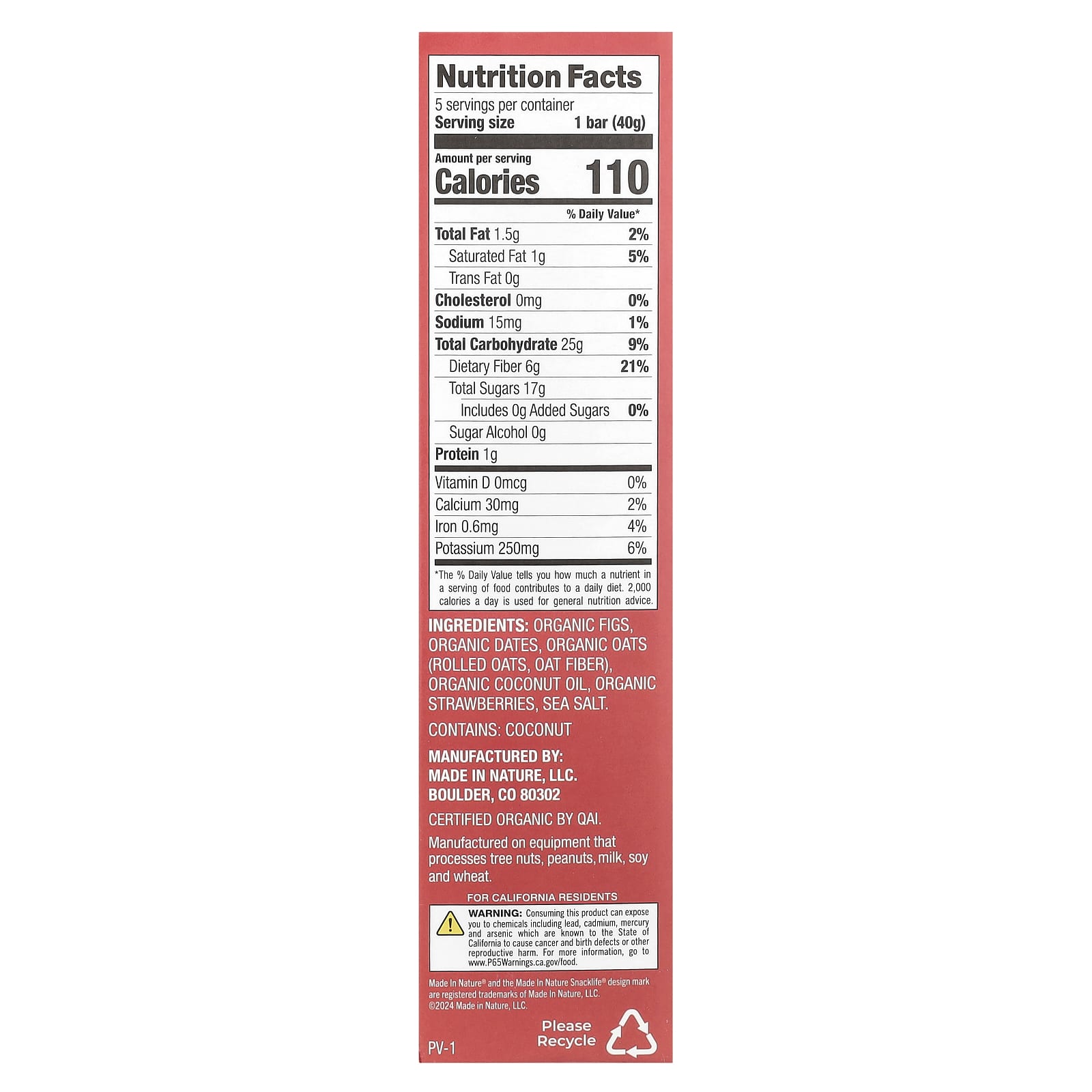 Органический инжир, органические финики, органический овес, овсяная клетчатка), органическое кокосовое масло, органическая клубника, морская соль.