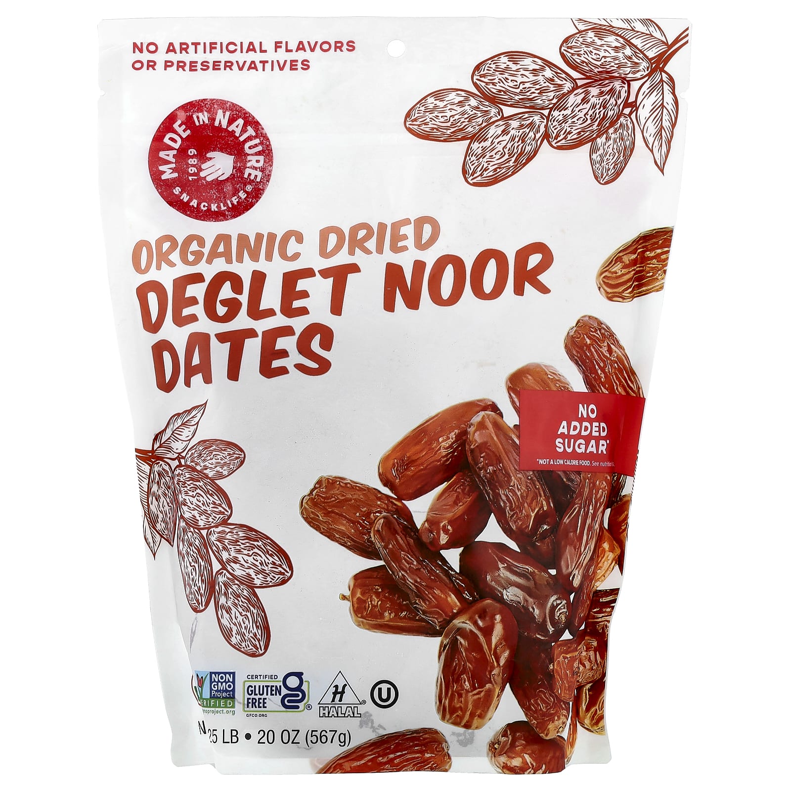 Финики Деглет Нур, также известные как "Королева фиников". Они пухлые. Они ценятся. Их собирают вручную с деревьев в жаркой пустыне, где прохладная подземная вода прохладно. Более того, их полупрозрачный светлый цвет и мягкий, похожий на карамель вкус делают их идеальным снеком.