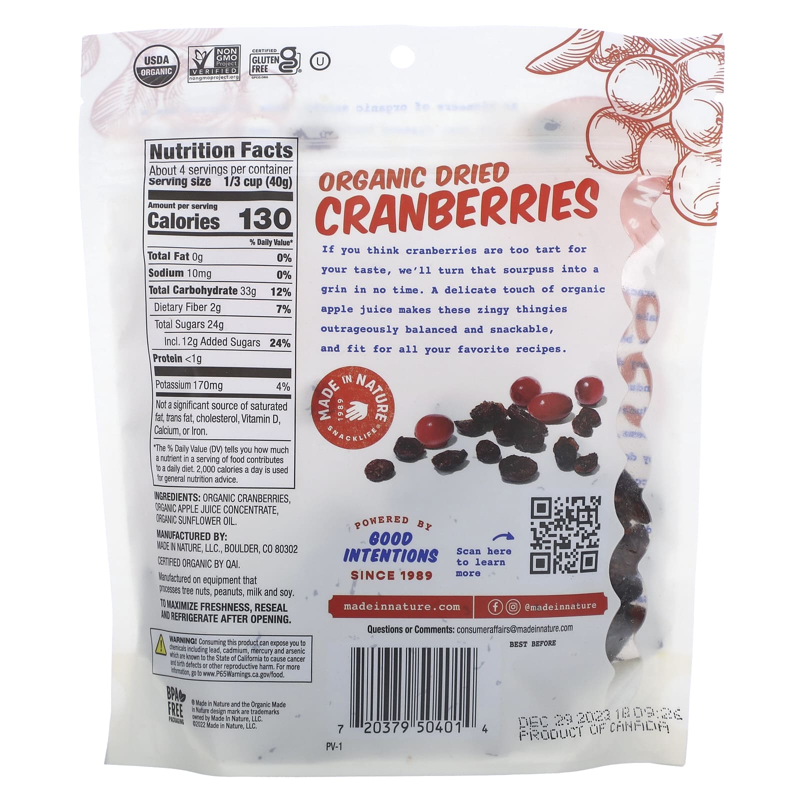 Made in Nature, органическая сушеная клюква, с органическим яблочным соком, 142 г (5 унций)