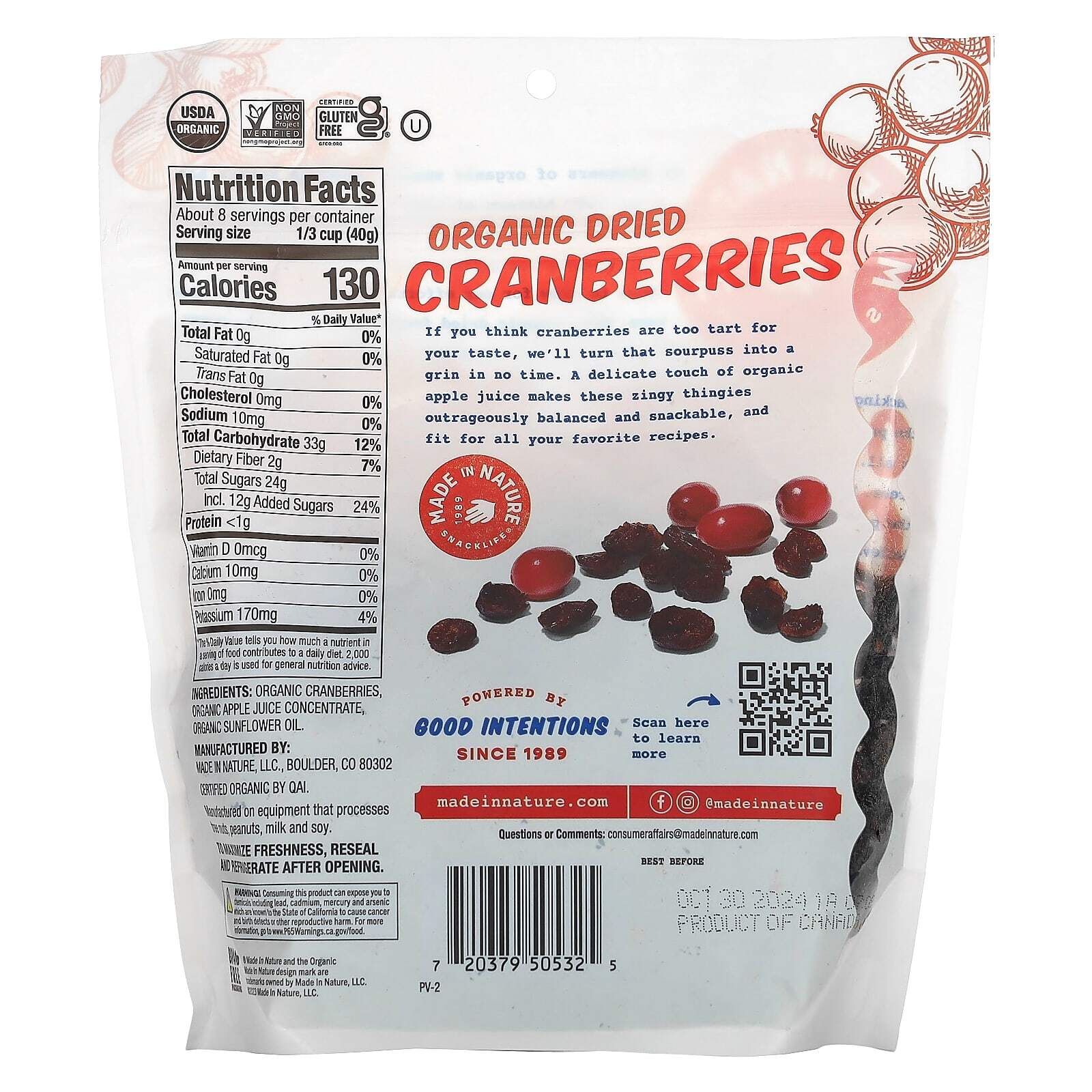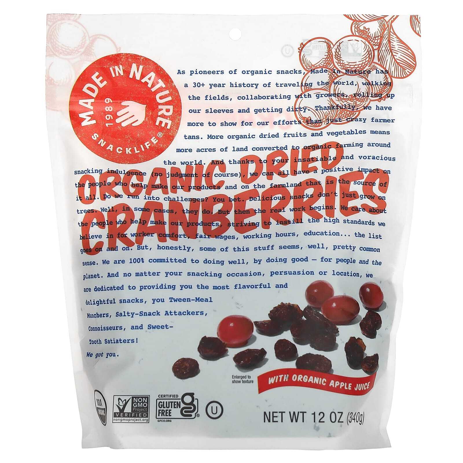 Made in Nature, органическая сушеная клюква, спелые и готовые суперснеки, 340 г (12 унций)