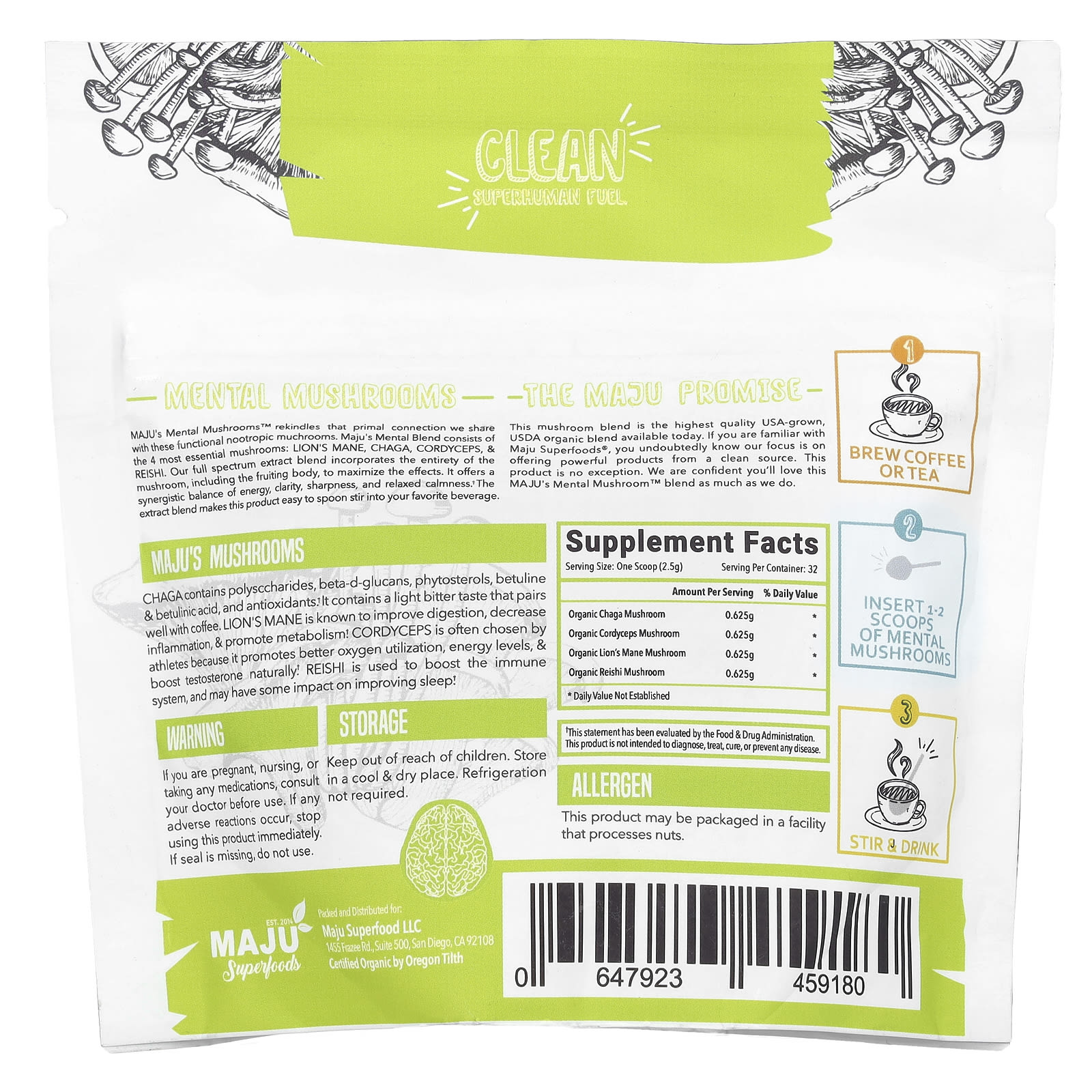 Эта смесь грибов - самая высококачественная органическая смесь, выращенная в США и доступная на сегодняшний день. Если вы знакомы с Maju Superfoods®, вы, несомненно, знаете, что мы стремимся предлагать эффективные продукты из экологически чистых источников. Этот продукт не является исключением. Мы уверены, что вам понравится эта смесь Mental Mushroom ™ от MAJU так же, как и нам.