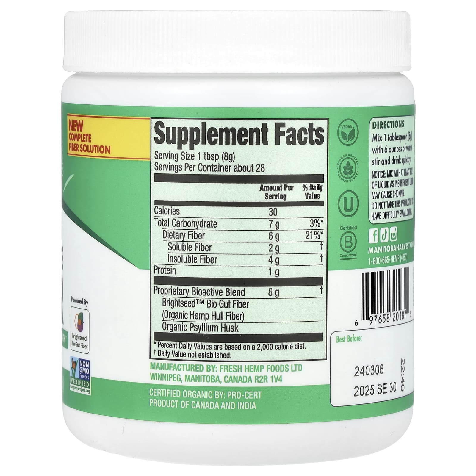 Powered Brightseed ™ Bio Gut Fiber, органическое волокно конопли, которое активно поддерживает здоровье кишечника.
