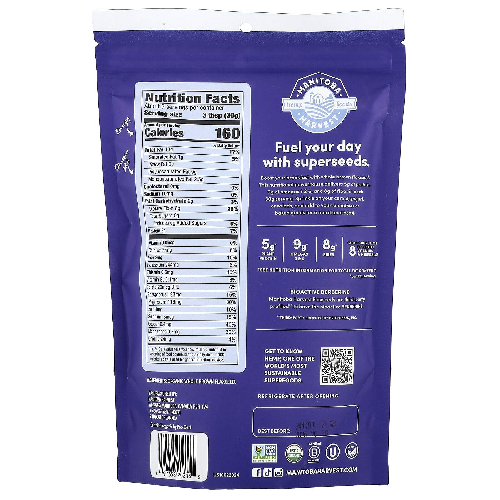 Семена льна, собранные в провинции Манитоба, имеют биологически активный берберин ** сторонними производителями.
