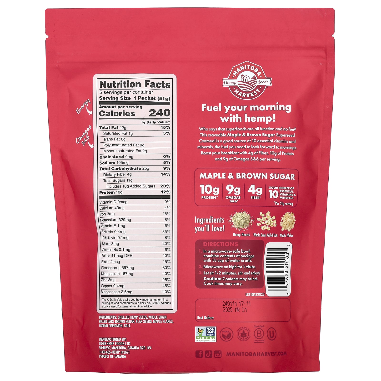 Кто сказал, что суперпродукты - это только функция, а не удовольствие? Эта восхитительная овсянка из клена и коричневого сахара является хорошим источником 10 незаменимых витаминов и минералов, которые помогут вам с нетерпением ждать утра. Улучшите свой завтрак с помощью 4 г клетчатки, 10 г белка и 9 г омега-3 и омега-6 в каждой порции.