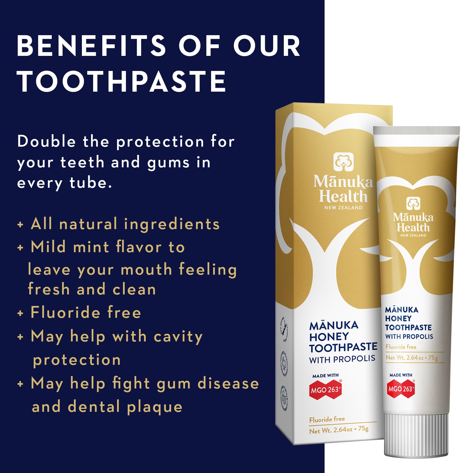 Натуральная зубная паста со вкусом свежей мяты бережно очищает и защищает зубы и десны. Специально разработанная с использованием меда манука MGO263+, прополиса и натуральных растительных экстрактов, наша зубная паста подарит ощущение свежести и чистоты во рту.