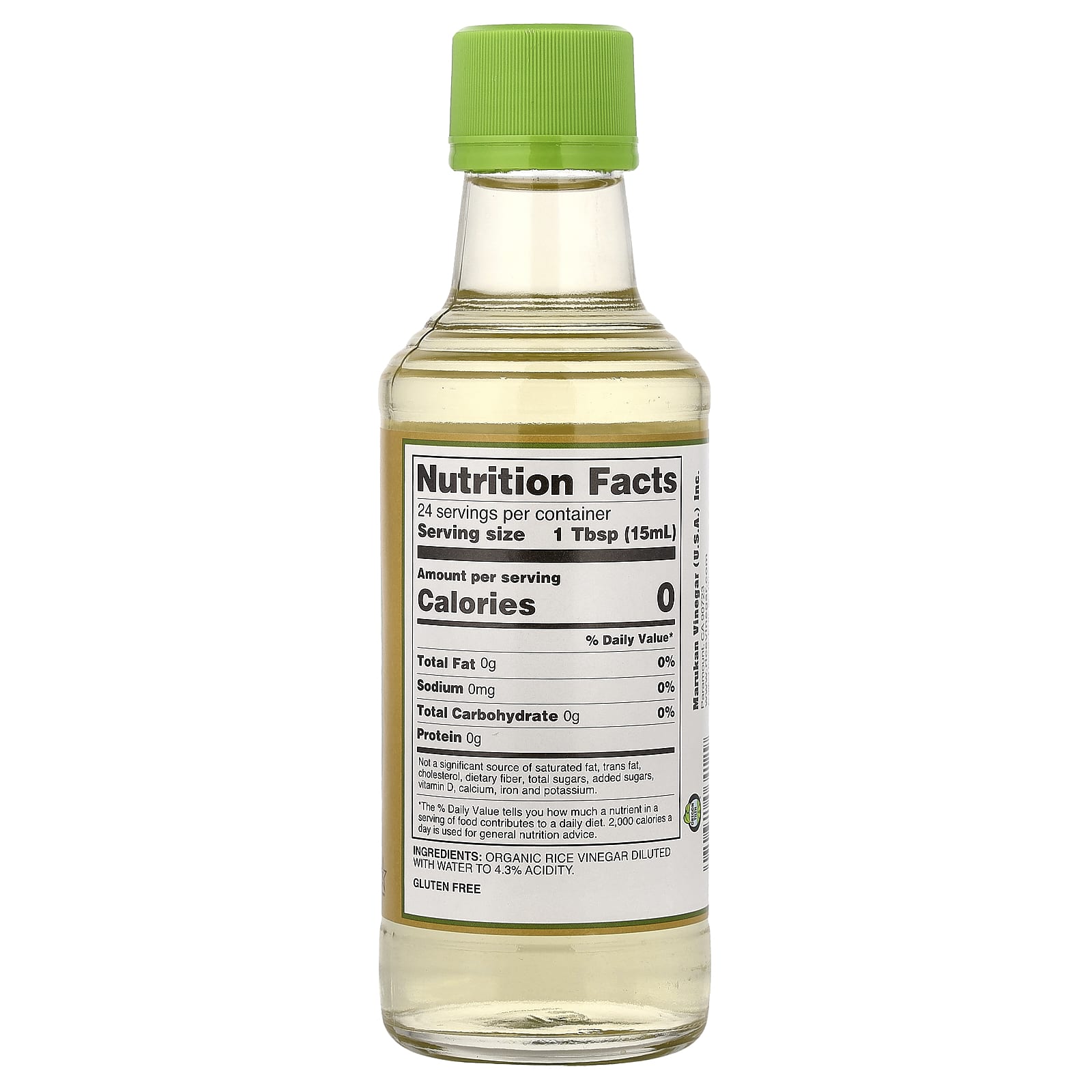 Органический рисовый уксус, разбавленный водой до 4,3% концентрации кислоты.