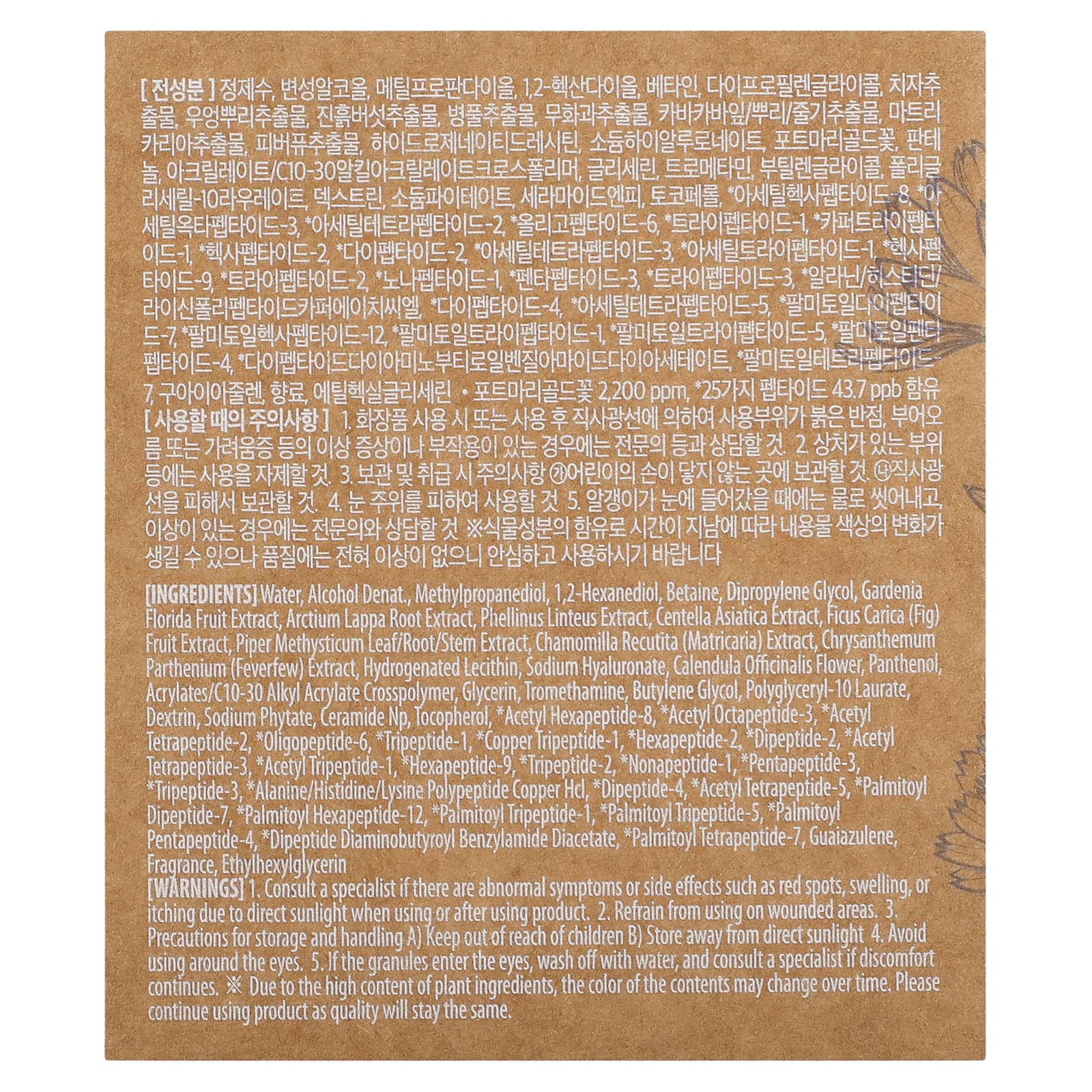 Из-за высокого содержания растительных ингредиентов цвет содержимого может со временем измениться. Продолжайте использовать продукт, поскольку качество останется прежним.