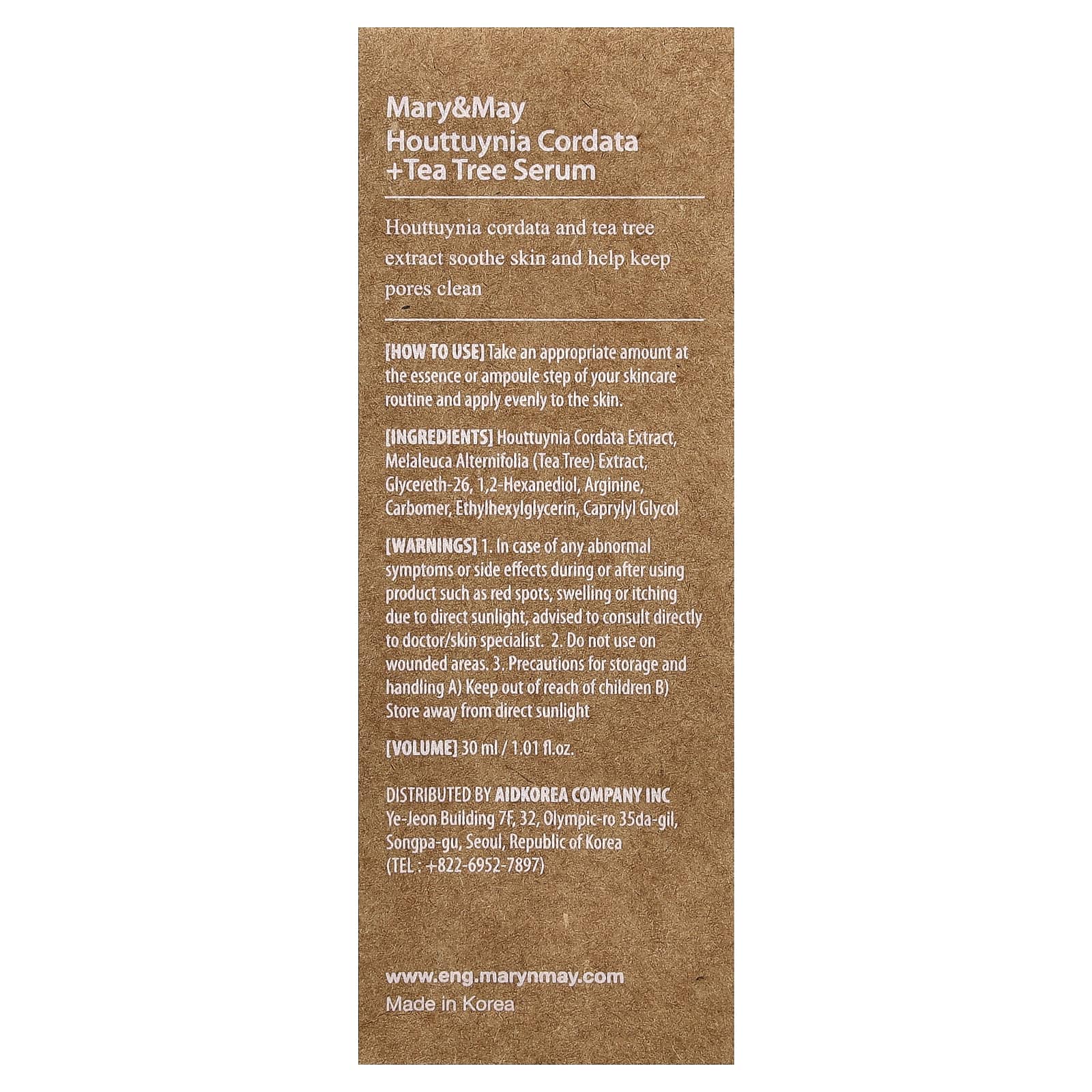 Содержит экстракты хауттюйнии (Houttuynia cordata) и чайного дерева для успокоения чувствительной кожи.
