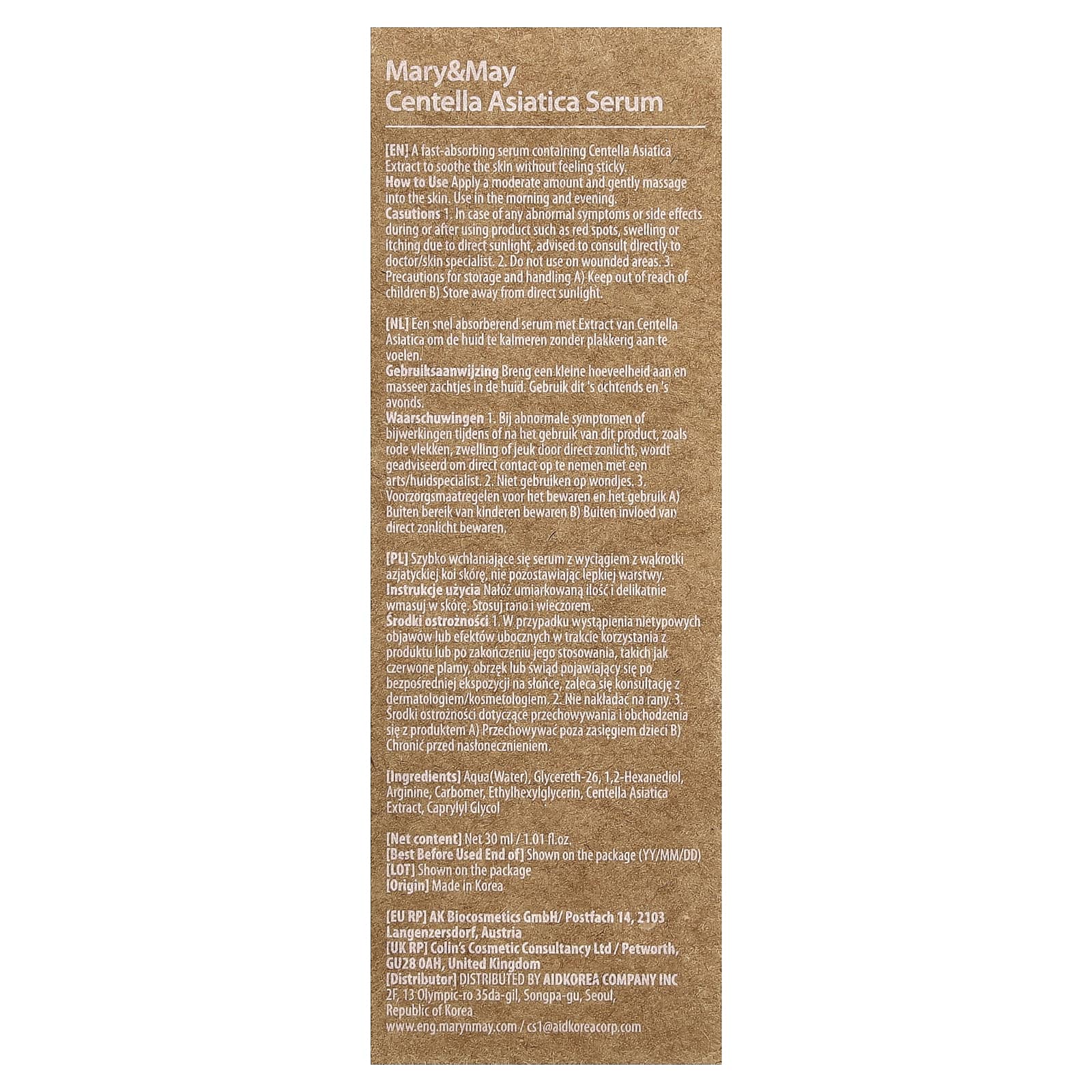 Вода, глицерет-26, 1,2-гександиол, аргинин, Карбомер, этилгексилглицерин, Экстракт центеллы азиатской, каприлилгликоль.