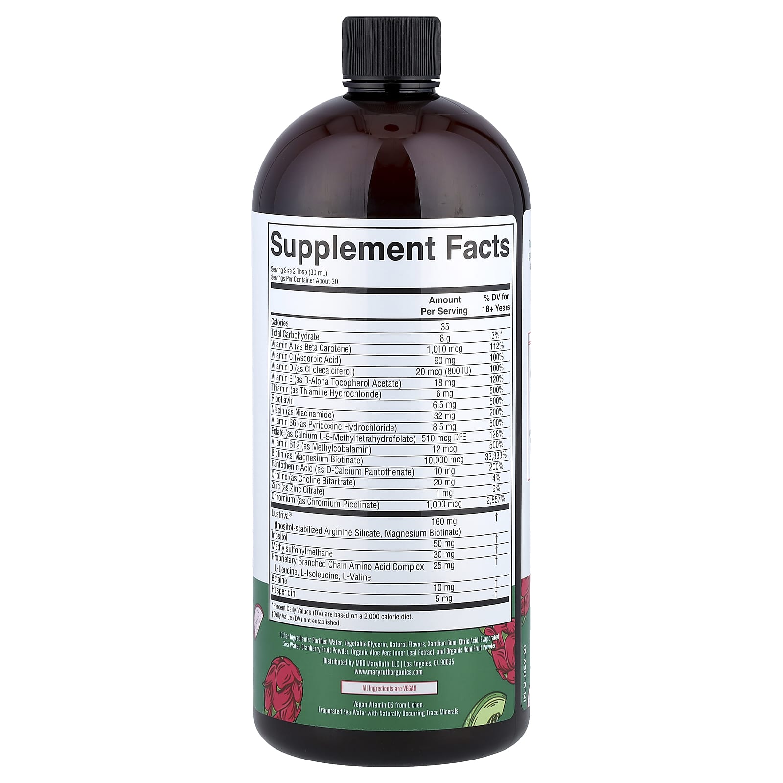 Очищенная вода, растительный глицерин, натуральные ароматизаторы, ксантановая камедь, лимонная кислота, испаренная морская вода, порошок из ягод клюквы, экстракт внутренних листьев органического алоэ вера (Aloe vera), органический порошок из плодов нони.
