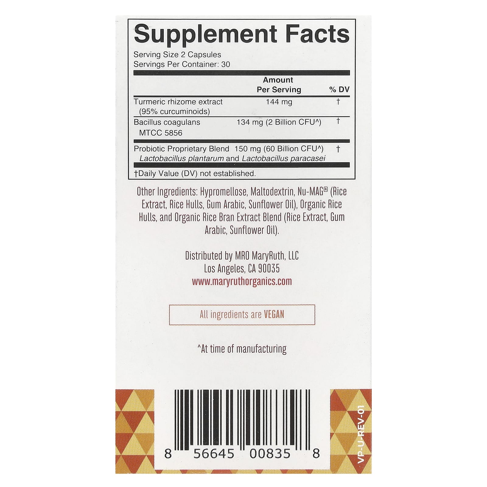 | Bacillus coagulans MTCC 5856 | 134 мг (2 млрд КОЕ ^) | † |