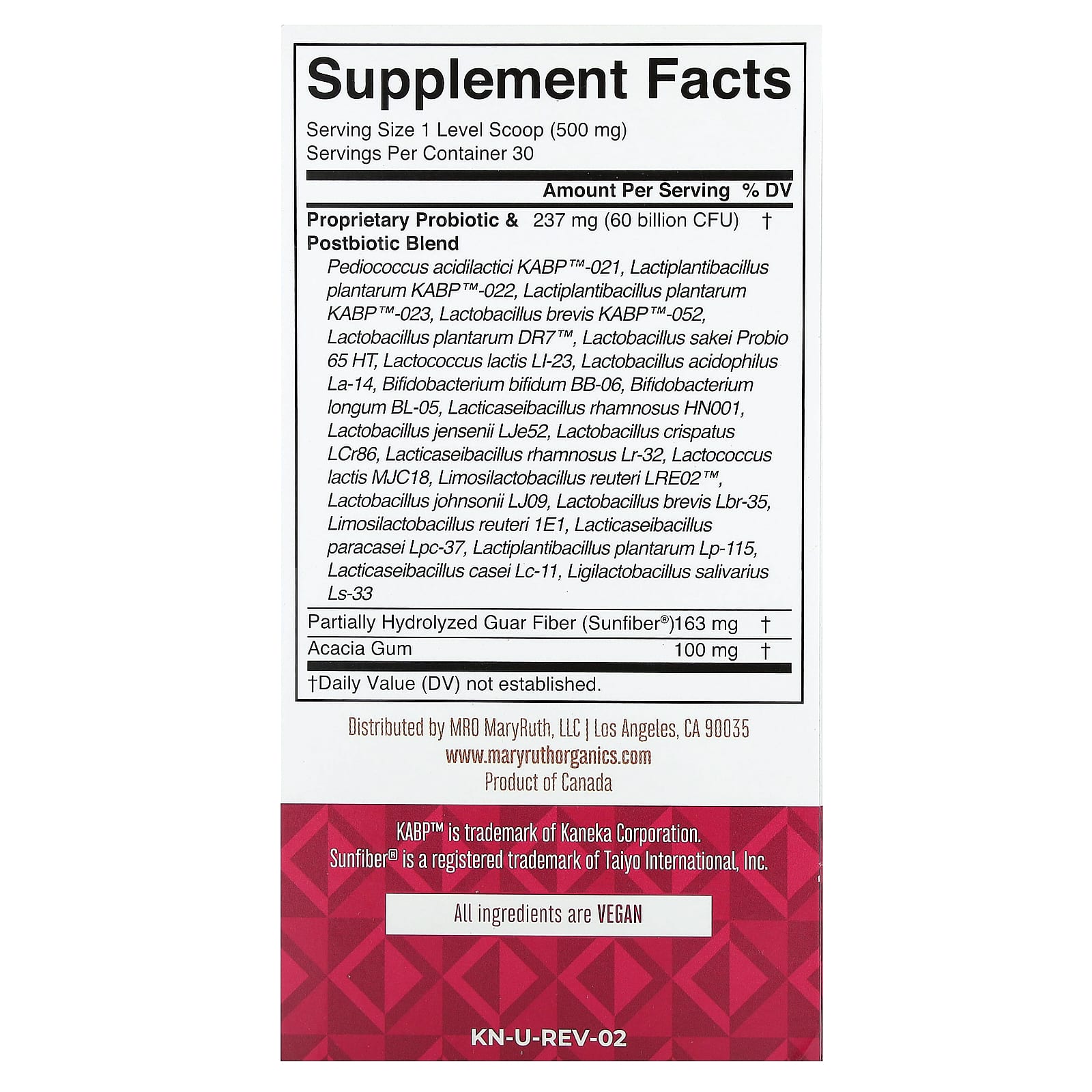 | Запатентованная смесь пробиотиков и постбиотиков Pediococcus acidilacti KABP™-021, лактобактерии плантарум (Lacti plantibacillus plantarum) KABP™-022, лактобактерии плантарум (Lactobacillus plantarum) KABP™-023, лактобактерии бревис (Lactobacillus brevis) KABP™-052, лактобактерии плантарум (Lactobacillus plantarum) DR7™, лактобактерии сакеи пробио (Lactobacillus sakei) 65 HT, молочный лактококк (Lactococcus lactis) LI-23, ацидофильные лактобактерии (Lactobacillus acidophilus) La-14 , Bifidobacterium bifidum BB-06, Bifidobacterium longum BL-05, Lacticaseibacillus rhamnosus HN001, Lactobacillus jensenii LJe52, Lactobacillus crispatus LCr86, Lacticaseibacillus rhamnosus Lr-32, Lactococcus lactis MJC18, Limosilactobacillus reuteri LRE02™, Lactobacillus johnsonii LJ09, Lactobacillus brevis Lbr-35, лимонилактобактерии реутери 1E1, лактобактерии параказеи (Lactaseibacillus paracasei) Lpc-37, лактобактерии плантарум (Lactilantobacillus plantarum) Lp-115, лактобактерии казеи Lc-11, лигилактобактерии саливариус (Lactobacillus salivarius) Ls-33 | 237 мг (60 млрд КОЕ) | † |