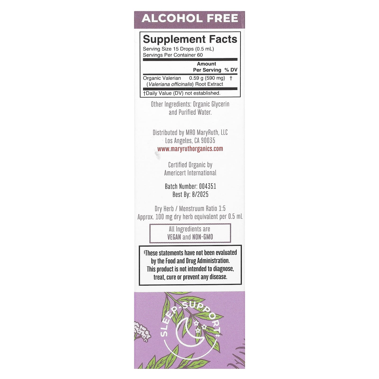 | Экстракт корня органической валерианы (Valeriana officinalis) | 0,59 г (590 мг) | † |
