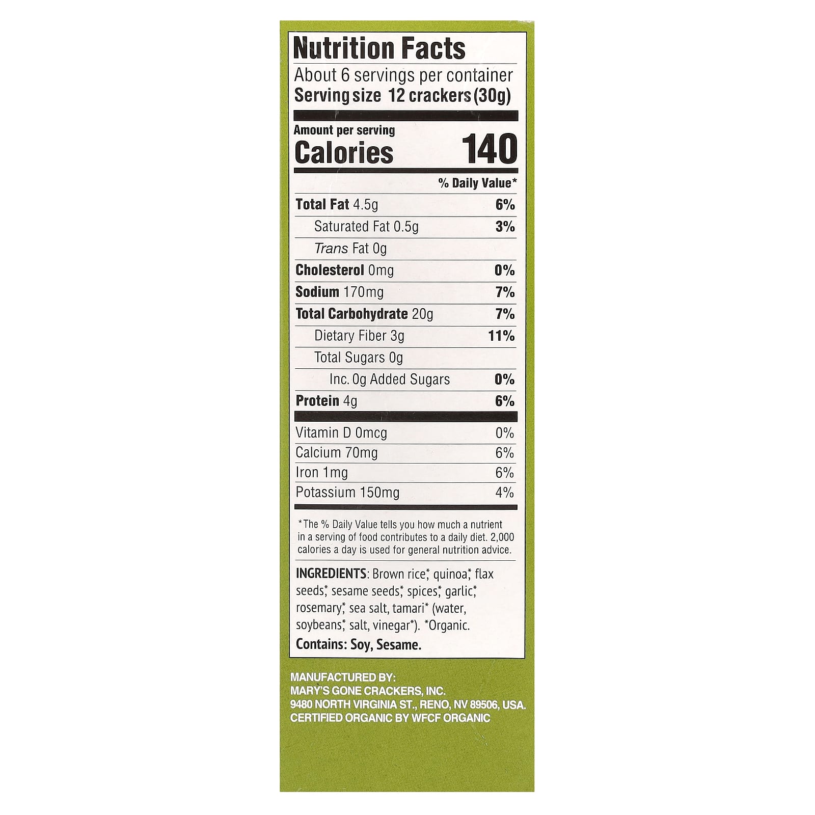 | Размер порции: 12 крекеров (30 г) | ||