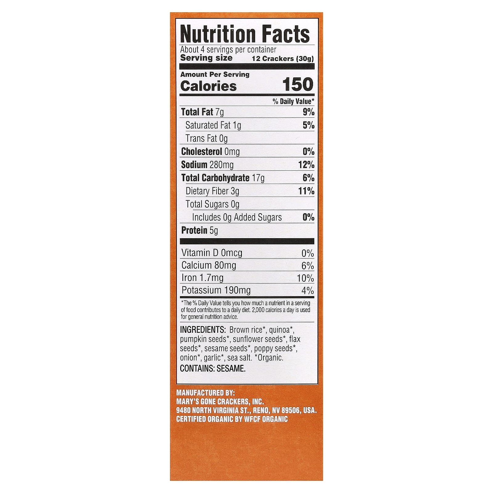 | Размер порции: 12 крекеров (30 г) | ||