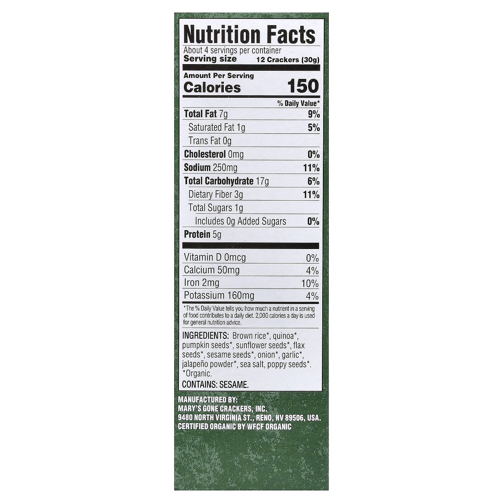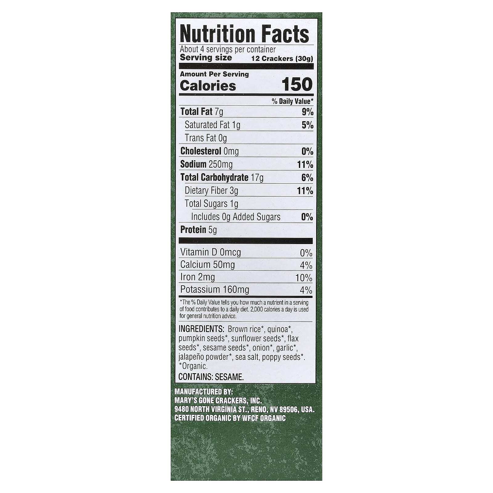 | Размер порции: 12 крекеров (30 г) | ||