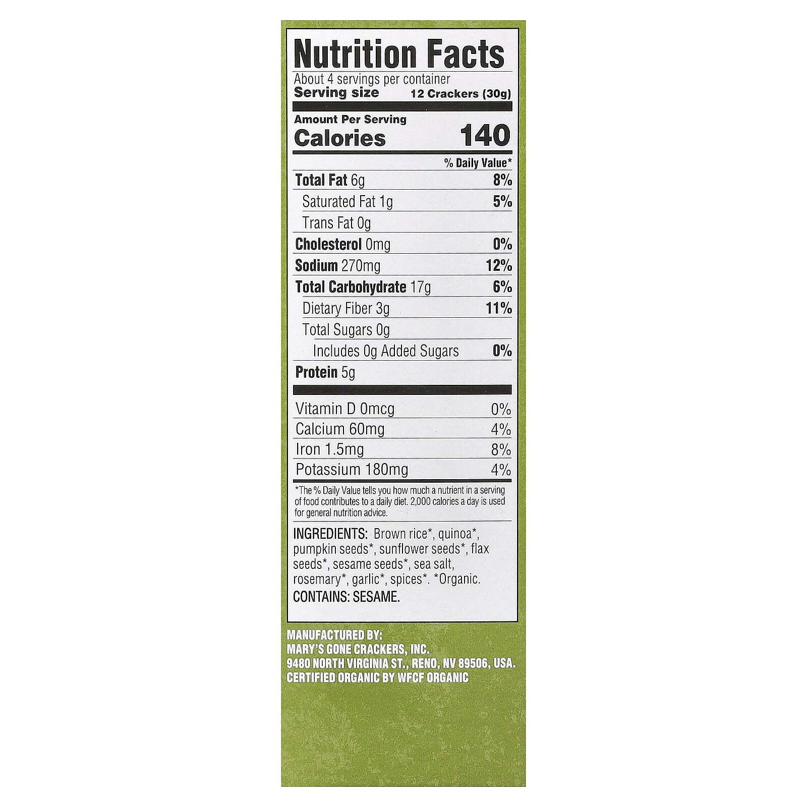 Коричневый рис*, киноа*, семена тыквы*, семена подсолнечника*, семена льна*, семена кунжута*, морская соль, розмарин*, чеснок*, специи*.