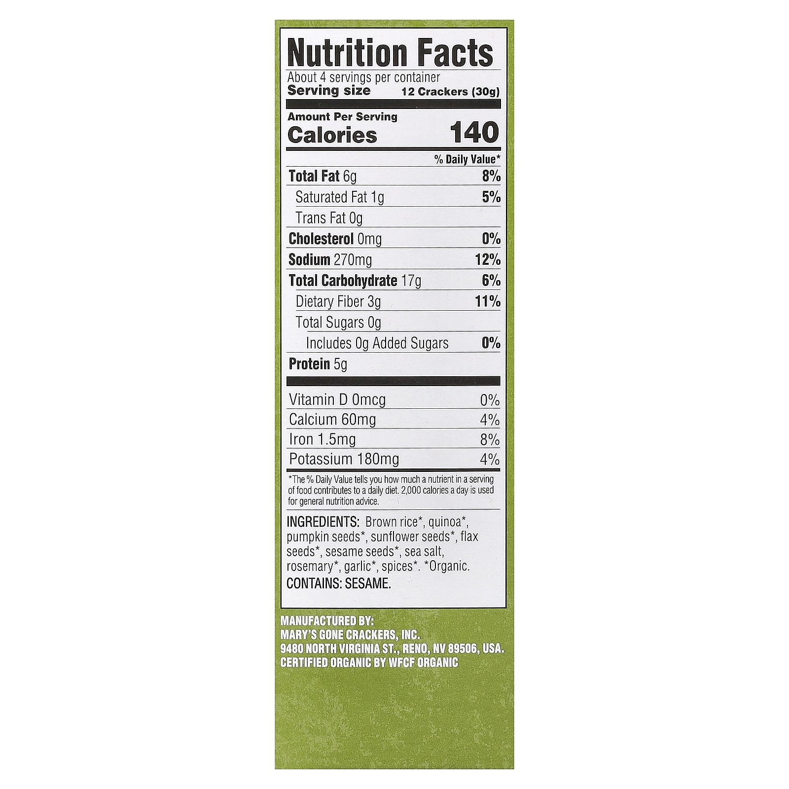 | Размер порции: 12 крекеров (30 г) | ||