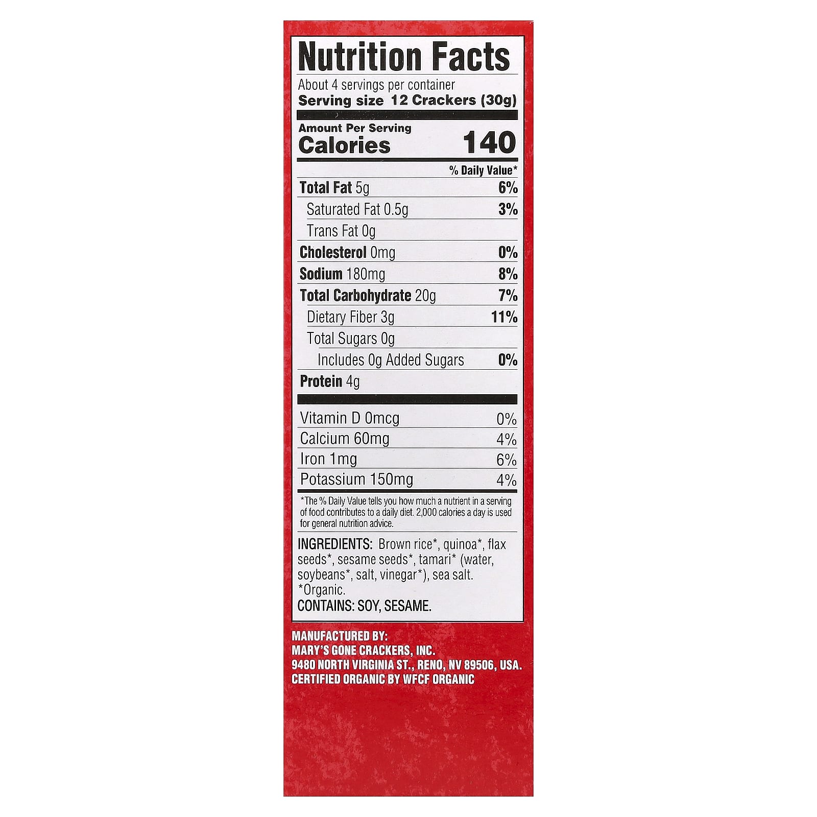 | Размер порции: 12 крекеров (30 г) | ||