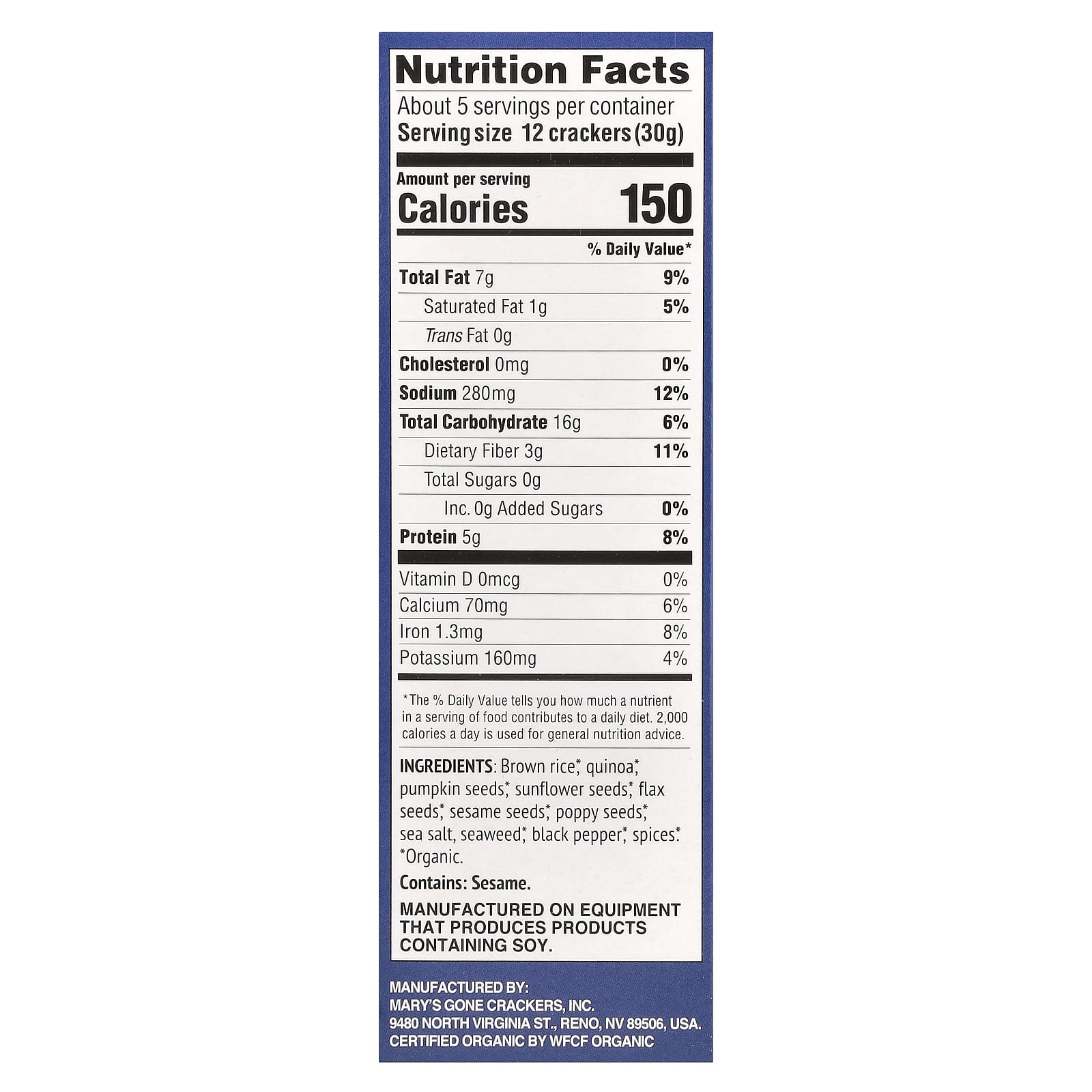 Размер порции: 12 крекеров (30 г)