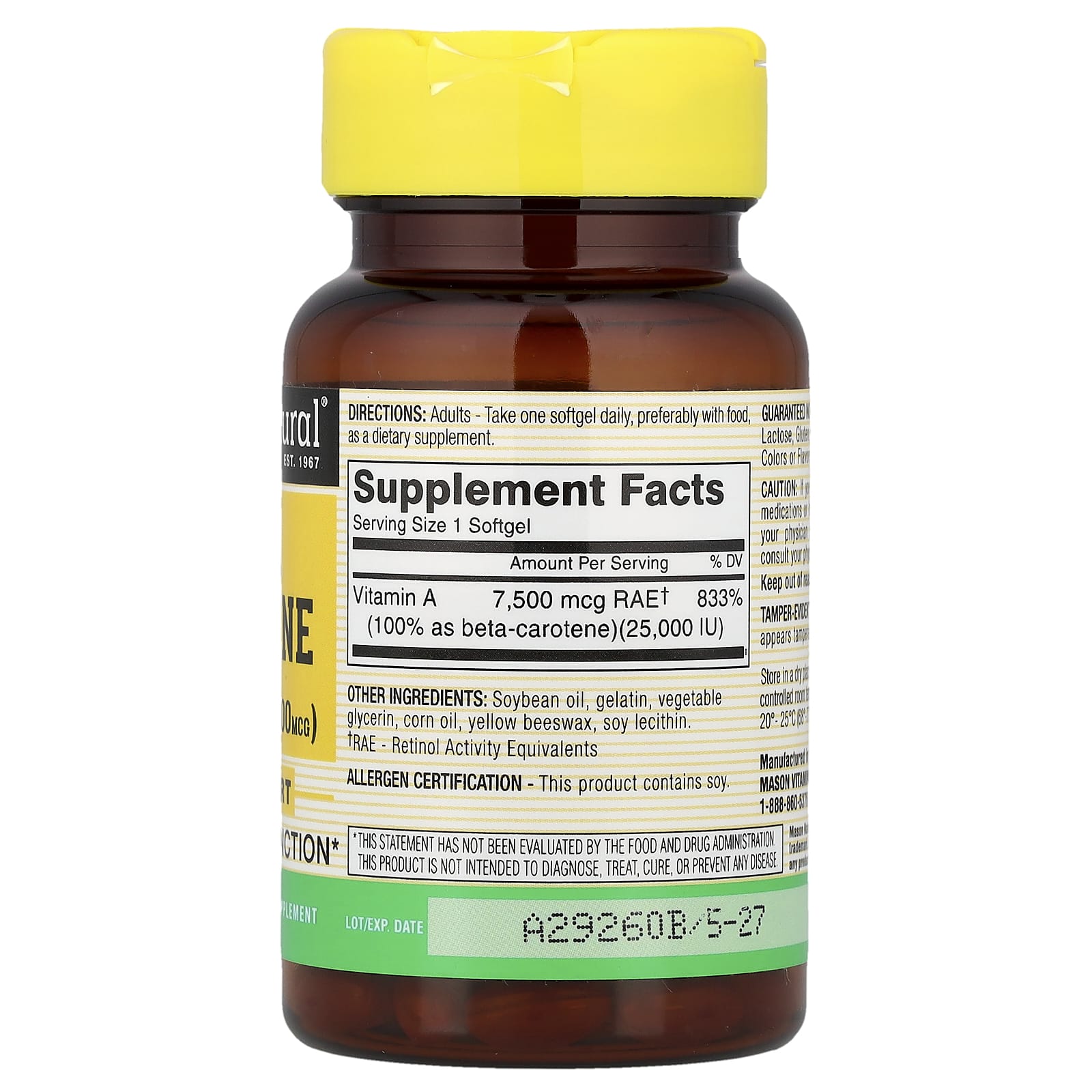 Бета-каротин - это безопасный и легкодоступный источник витамина А, который содержится в моркови, батате и других питательных продуктах. Поскольку бета-каротин растворяется в воде, он может перемещаться в те части тела, в которых не может жирорастворимый витамин A. Достигая важного участка в организме, он при необходимости быстро превращается в витамин A. Витамин A, также известный как ретинол, помогает поддерживать здоровье клеток сетчатки внутри глаза, что, в свою очередь, поддерживает хорошее зрение. Витамин А (и бета-каротин) также играет важную роль в нормальной транскрипции ДНК в РНК, что обеспечивает правильную экспрессию генов и нормальное развитие клеток. Это особенно важно для развития некоторых иммунных клеток, таких как NK-клетки, лимфоциты и моноциты. Как и витамин A, бета-каротин может быть мощным антиоксидантом и обеспечивать защиту от повреждения свободными радикалами клеток, ДНК и многих других частей организма. Бета-каротин - это каротиноид, один из растительных пигментов, которые обладают антиоксидантными и другими свойствами. Попадая в организм, он быстро превращается в витамин A. Это незаменимое питательное вещество содержится преимущественно в желтых, оранжевых и темно-зеленых овощах, таких как морковь, батат, шпинат и кудрявая капуста, а также во фруктах, таких как мускатная дыня и абрикосы. Нормальный уровень витамина A играет ключевую роль для хорошего зрения, крепкого иммунитета и общего состояния здоровья.