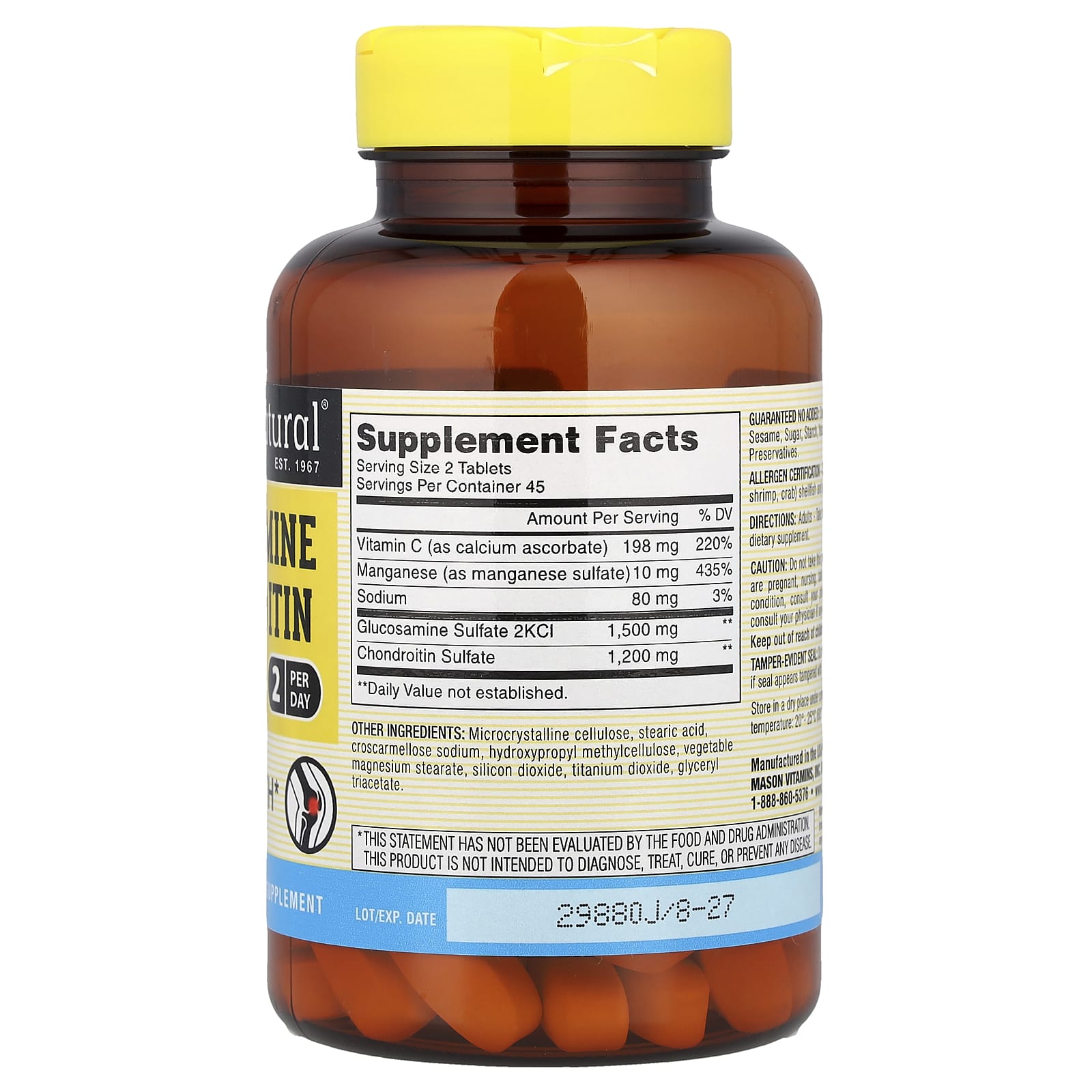 Глюкозамин и хондроитин являются неотъемлемой частью каждого сустава вашего тела. Они присутствуют в суставных хрящах и синовиальной жидкости суставов. Глюкозамин обеспечивает основу для соединений, называемых гликозаминогликанами (AKA протеогликаны), которые являются основными компонентами хрящей. Как и глюкозамин, хондроитин может поддерживать нормальный здоровый уровень протеогликанов, но он также помогает поддерживать здоровый уровень гиалуроновой кислоты, которая, в свою очередь, может поддерживать здоровый уровень синовиальной жидкости. Хондроитин также может влиять на то, как хондроциты (хрящевые клетки) вызывают повреждение хрящевого матрикса. Витамин С поддерживает здоровье суставов, поскольку он играет жизненно важную роль в поддержании нормального функционирования коллагена в суставах. Марганец помогает поддерживать здоровый уровень определенных аминокислот, необходимых для здорового коллагена. Поскольку ни глюкозамин, ни хондроитин не присутствуют в значительных количествах в обычном рационе, ежедневная добавка не менее 1500 мг и 1200 мг может быть полезной для поддержания здоровья суставов.