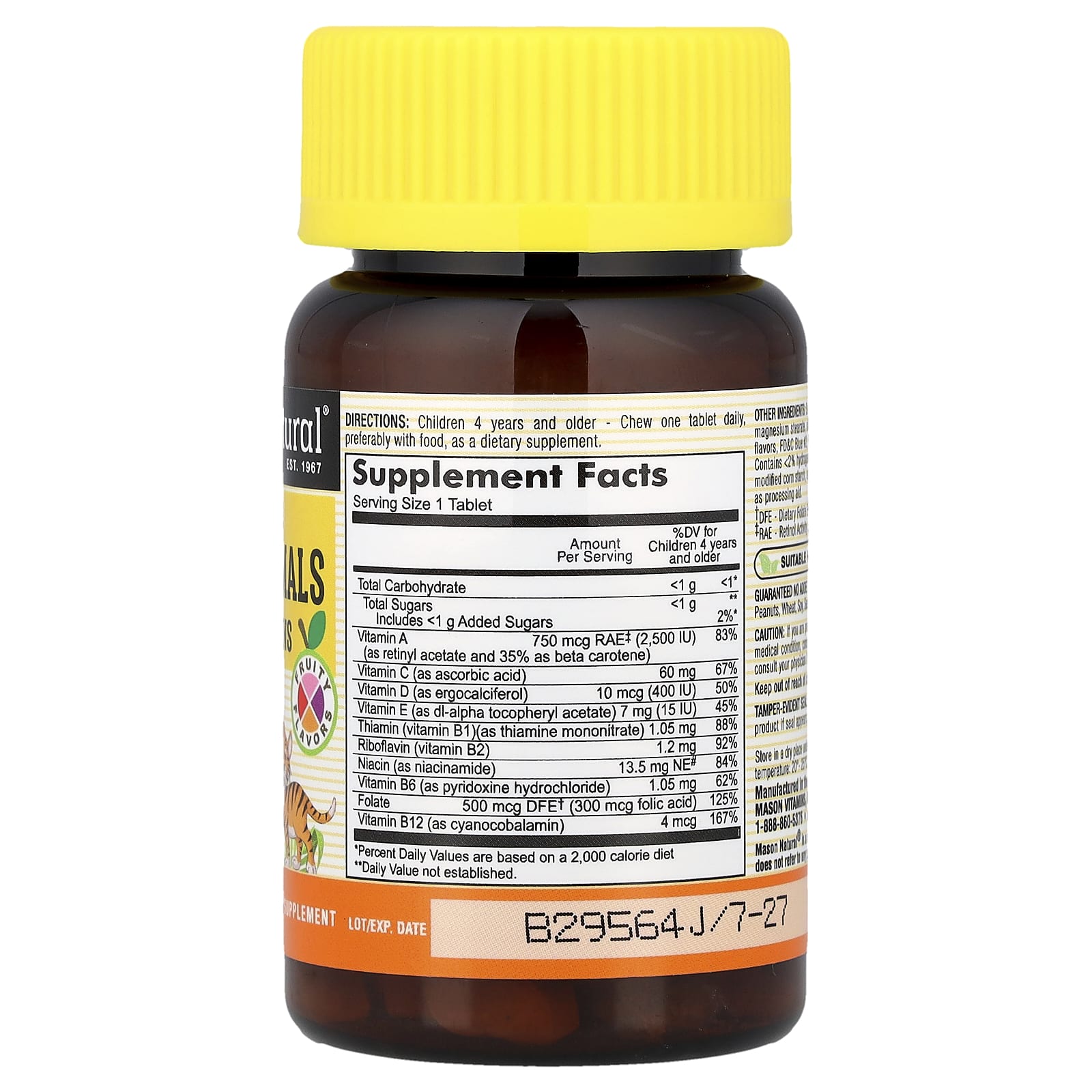 Мультивитамины для детей - отличный способ обеспечить детей всеми необходимыми питательными веществами. Наши жевательные мультивитамины для детей специально разработаны для детей от 4 лет и содержат питательные вещества, в которых они больше всего нуждаются в первые годы развития. Наши жевательные таблетки для детей содержат ежедневный запас витаминов группы B, таких как фолиевая кислота, витамин B12, а также витамины B1, B2 и B6, которые поддерживают здоровую работу мозга, иммунную функцию, обмен веществ и выработку энергии. Она также содержит витамин A для поддержания здоровья глаз и защиты от токсинов и свободных радикалов. И, конечно же, детям необходим витамин С для поддержания здоровья иммунной системы, нормального роста и антиоксидантной защиты. При ежедневном приёме наши мультивитамины для детей обеспечат ваших детей всеми необходимыми витаминами, необходимыми для поддержания здоровья и хорошего самочувствия.