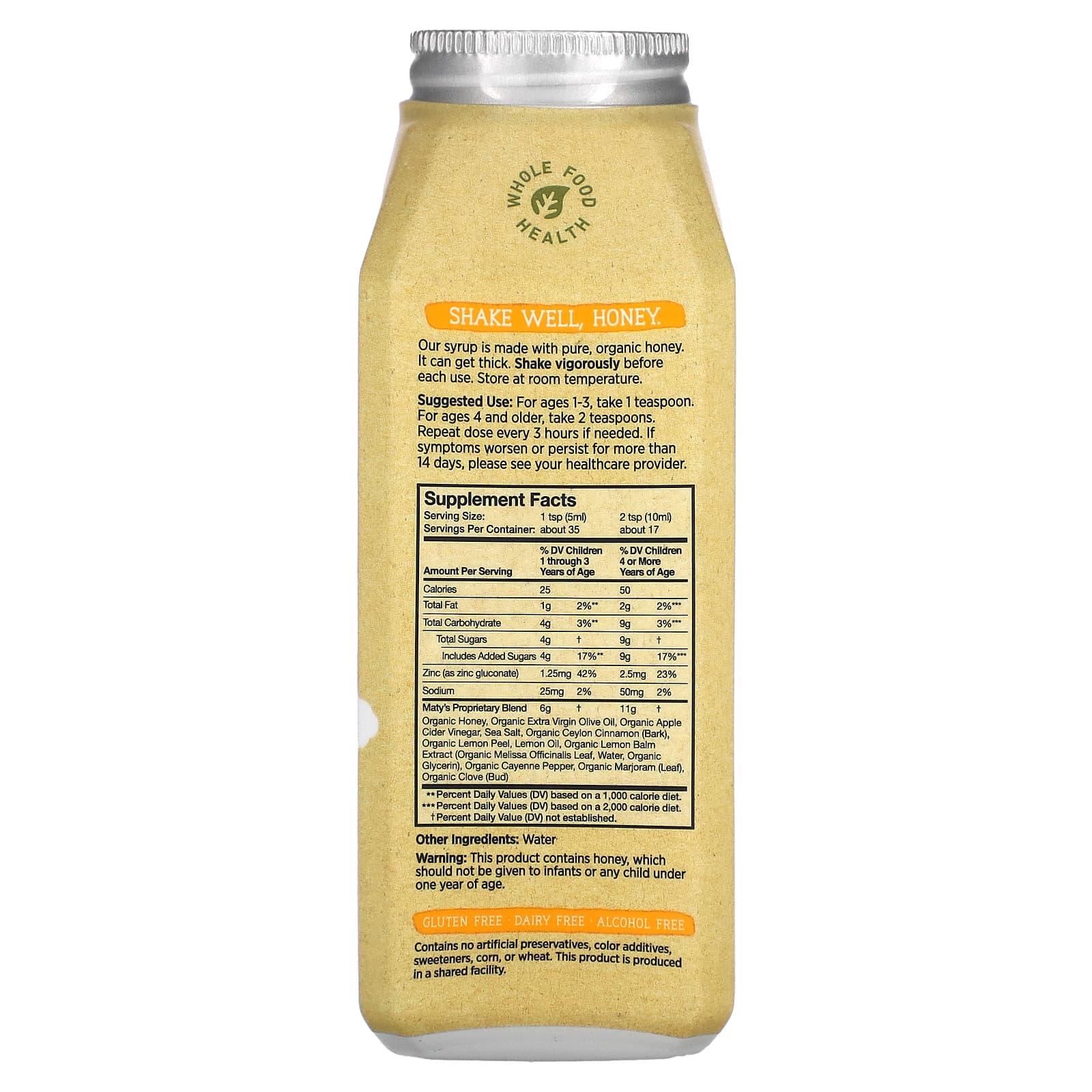 Наш сироп изготовлен из чистого органического меда. Может загустеть. Хорошо встряхивайте перед каждым использованием.