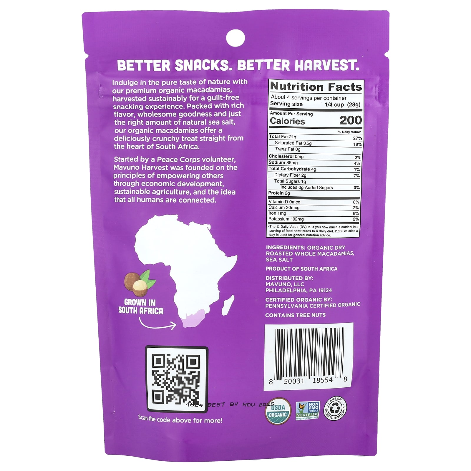 Органические макадамии, обжаренные в сухом виде, морская соль.