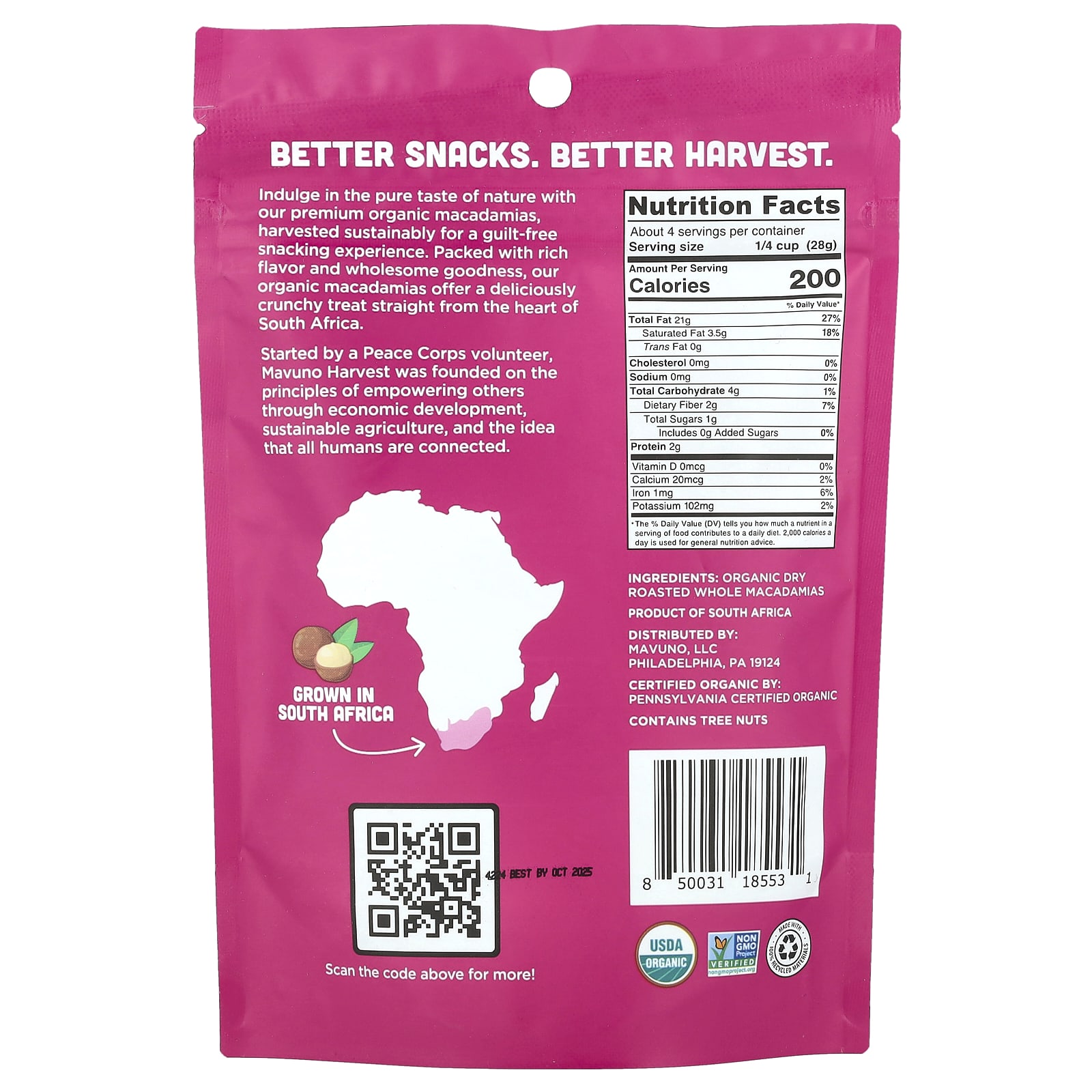 Основанная волонтером Корпуса мира, компания Mavuno Harvest была основана на принципах расширения прав и возможностей других за счет экономического развития, устойчивого сельского хозяйства и идеи, что все люди связаны между собой.