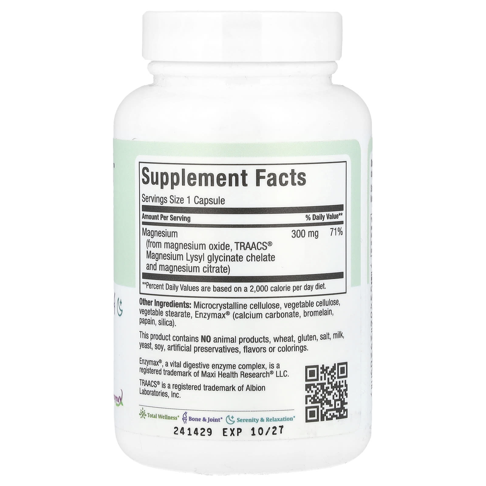 | Магний (из оксида магния, TRAACS® Хелат лизилглицината магния цитрат магния) | 300 мг | 71% |