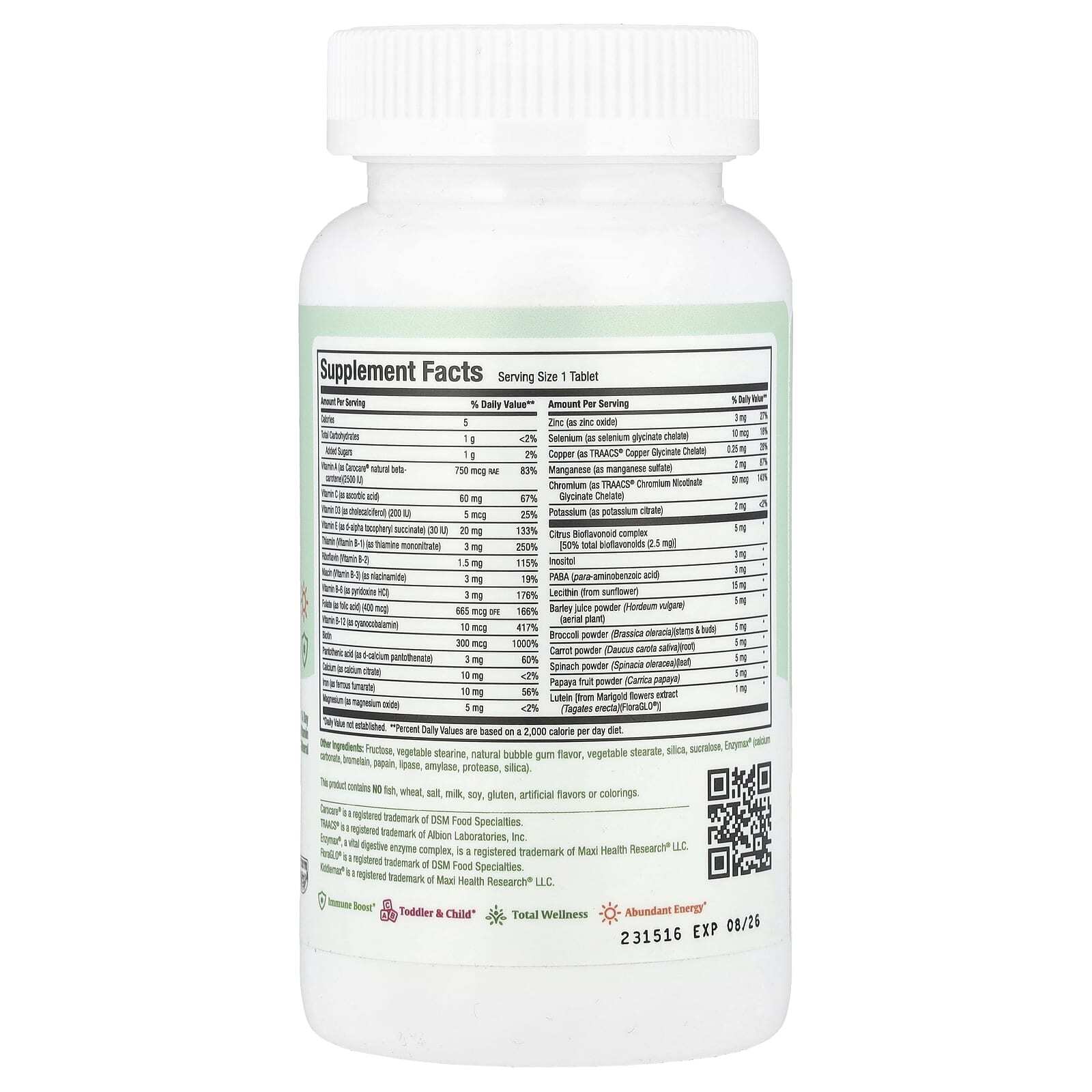 Chewable Kiddievite ™ содержит 30 питательных ингредиентов из цельных продуктов, витамины, минералы и аминокислоты, которые необходимы для роста и развития ребенка после первого дня рождения. Нажмите на информацию о добавках и убедитесь в этом сами!