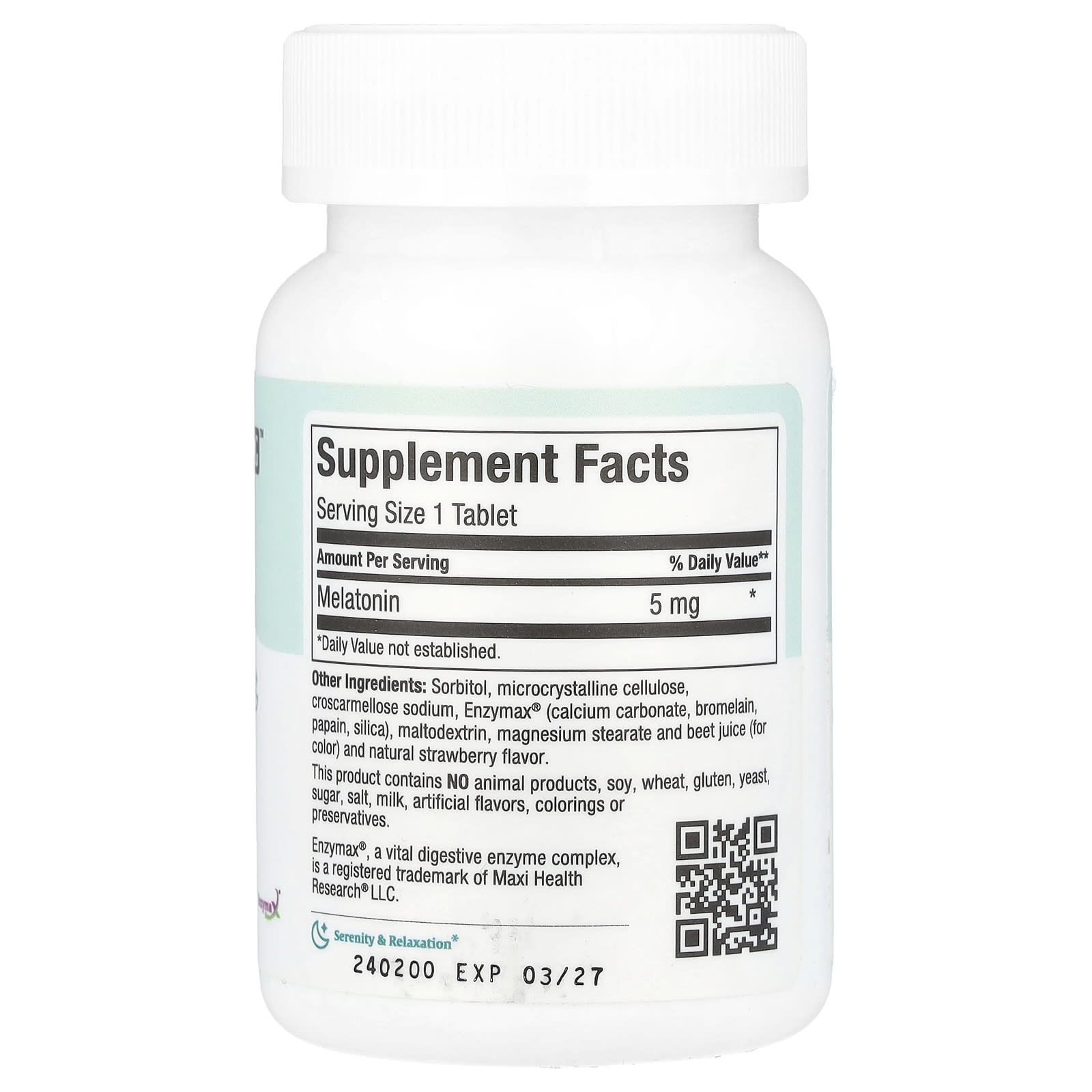сорбитол, микрокристаллическая целлюлоза, кроскармеллоза натрия, Enzymax® (карбонат кальция, бромелаин, папаин, диоксид кремния), мальтодекстрин, стеарат магния и свекольный сок (для цвета) и натуральный клубничный ароматизатор.