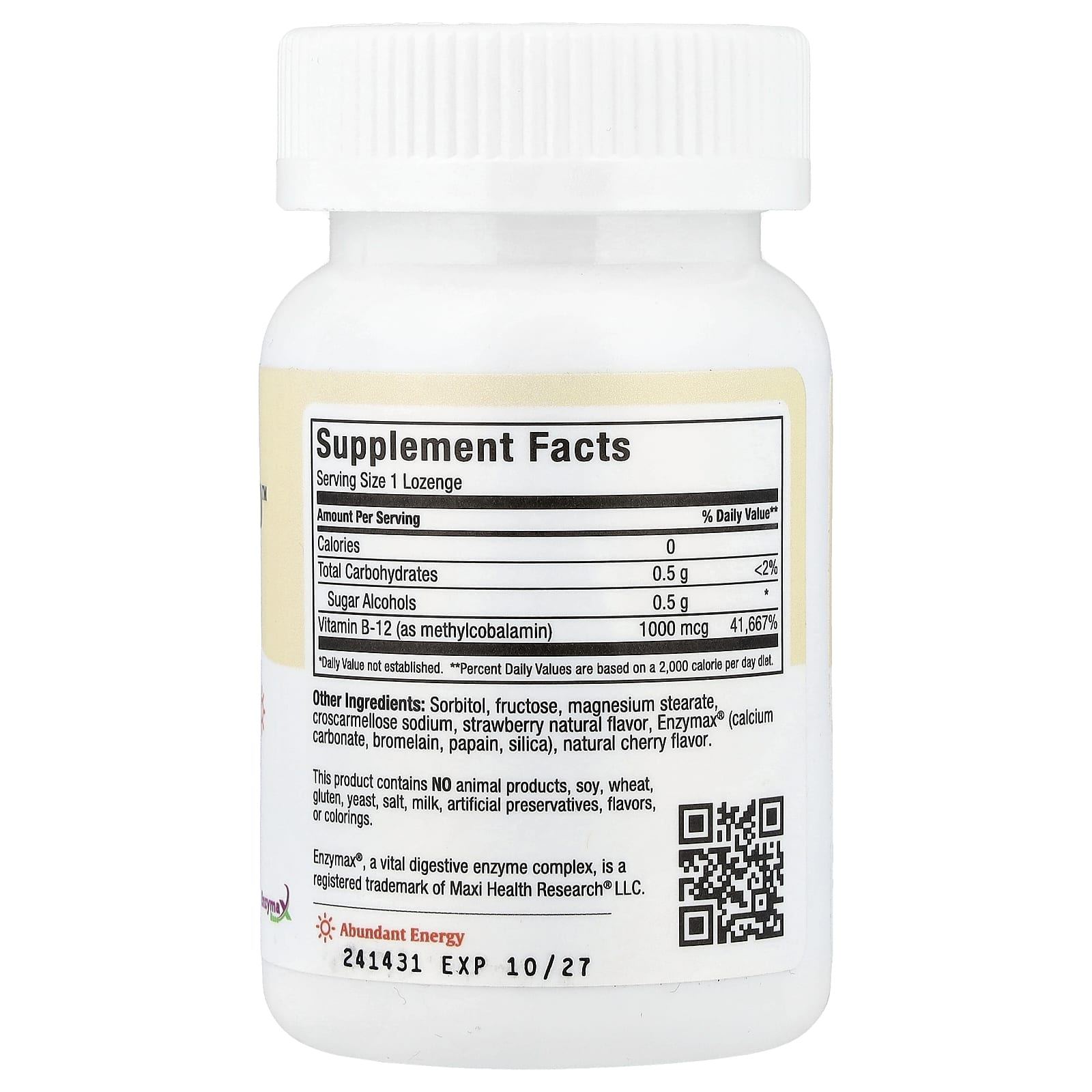 Maxi Health рада предложить пастилки с метилом B12 со вкусом ягод 1000™. Он идеально подходит для тех, кому нужно принимать другие формы витамина B12, но он не усваивается. Кроме того, она отлично подходит для тех, кто хочет воспользоваться преимуществами ее большей биодоступности.