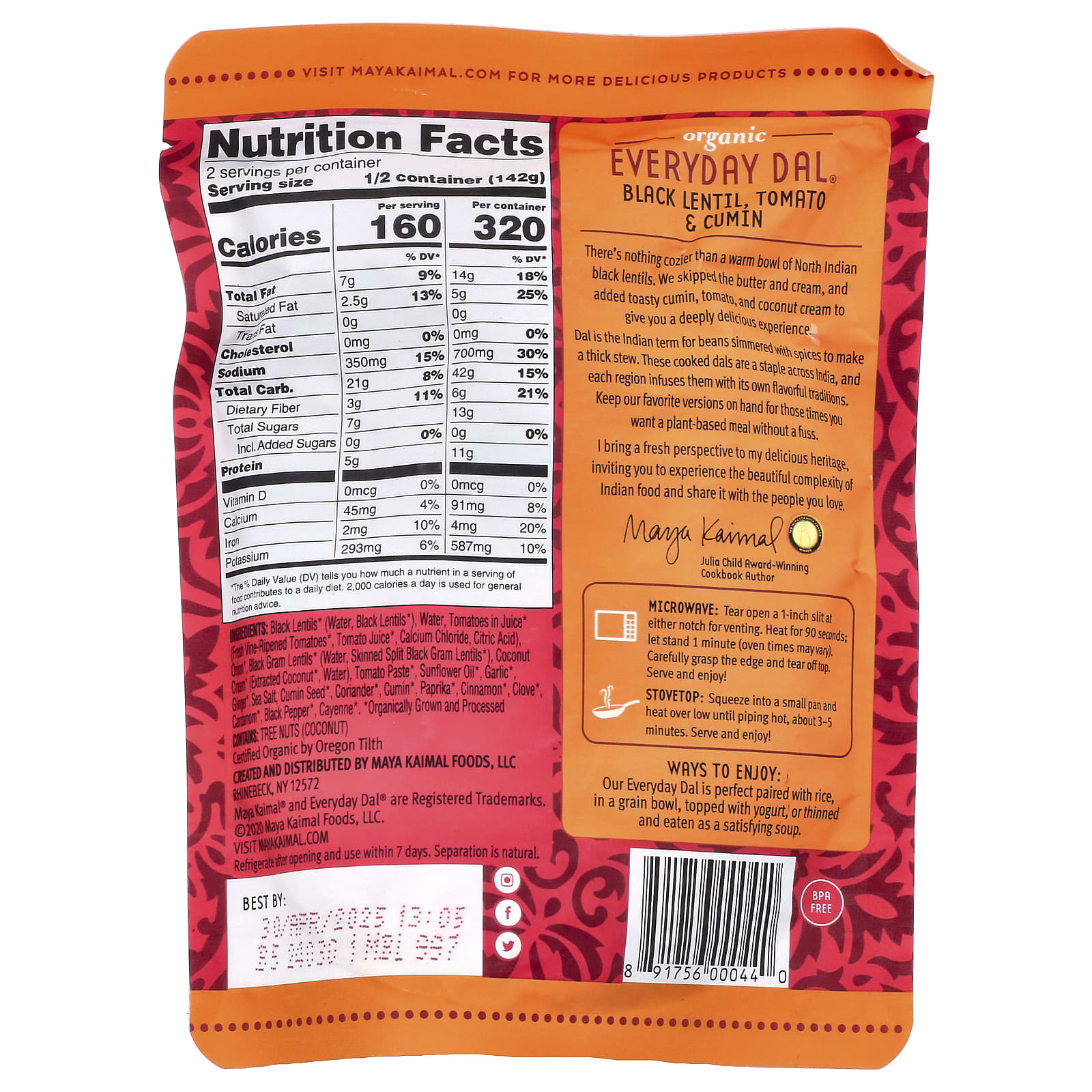 Maya Kaimal, Organic Everyday Dal, черная чечевица, томат и тмин, 284 г (10 унций)