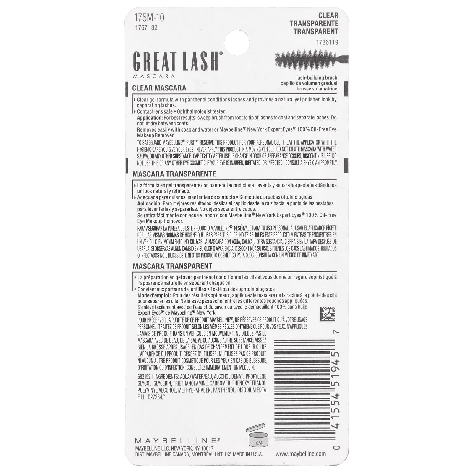 Чтобы сохранить чистоту Maybelline®, оставьте этот продукт для личного использования. Бережно ухаживайте за аппликатором, как за своими глазами. Никогда не наносите данный продукт в движущемся транспортном средстве. Не разбавляйте тушь водой, слюной или любыми другими веществами. Плотно закрывайте упаковку после использования. При изменении запаха или внешнего вида следует прекратить использование. Не используйте это или любое другое косметическое средство для глаз, если ваши глаза повреждены, раздражены или заражены. Немедленно обратитесь к врачу.