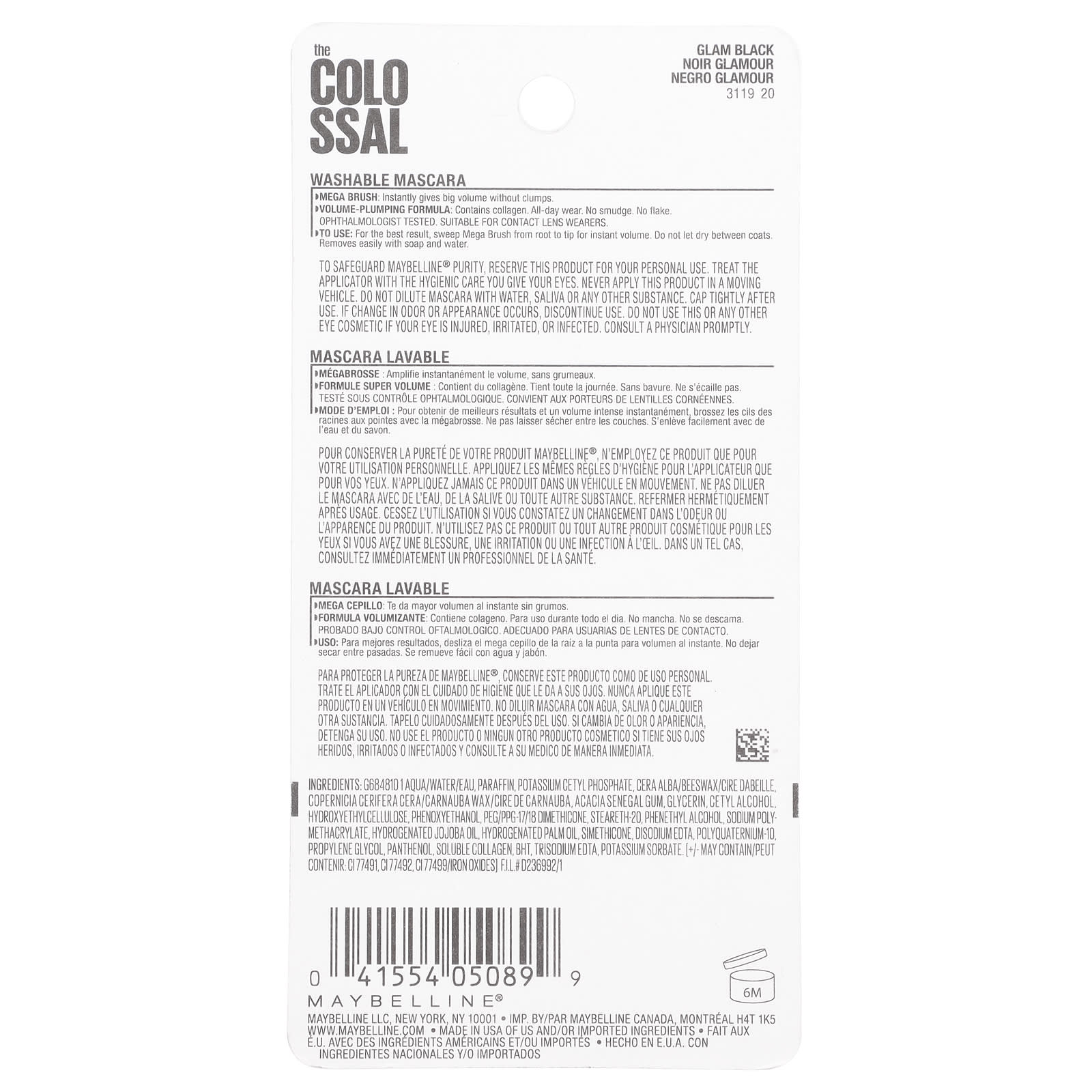 Maybelline, The Colossal Mascara, 230 Glam Black, 9,2 мл (0,31 жидк. унц.)