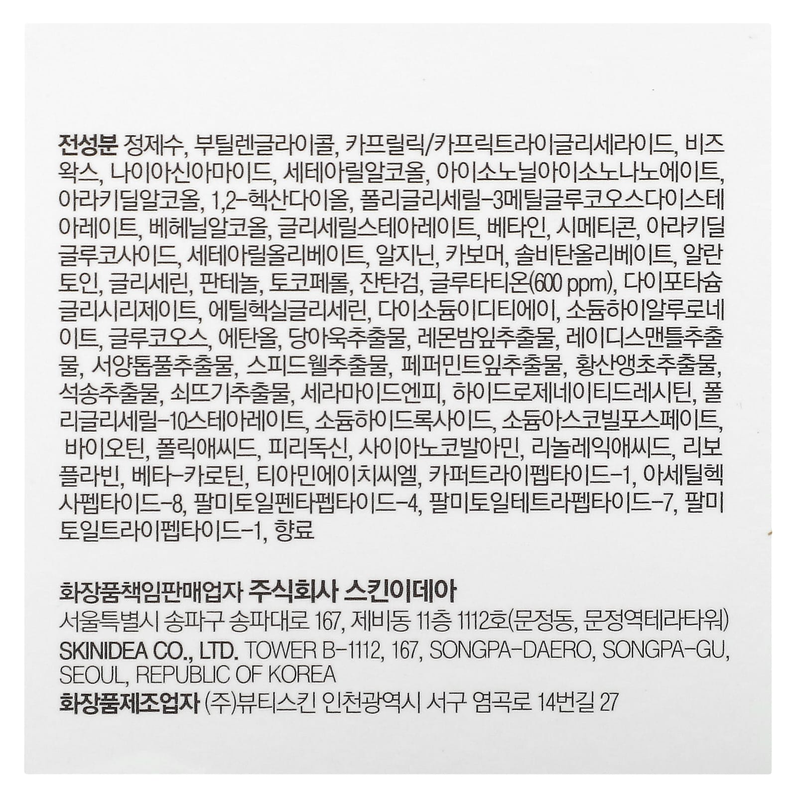 Вода, бутиленгликоль, каприловый/каприновый триглицерид, пчелиный воск, никотинамид, цетеариловый спирт, изононил изононаноат, арахидиловый спирт, 1,2-гександиол, полиглицерил-3 метилглюкозы дистеарат, бегениловый спирт, глицерил стеарат, бетаин, симетикон, арахидиловый глюкозид, цетеарил оливат, аргинин, карбомер, сорбитан оливат, аллантоин, глицерин, пантенол, токоферол, ксантановая камедь, глутатион (600 част. / млн), дикалия глицирризат, этилгексилглицерин, двунатриевая ЭДТК, гиалуронат натрия , глюкозы, спирт, экстракт мальвы (Malva sylvestris), экстракт листьев мелиссы лекарственной (Melissa officinalis), экстракт манжетки обыкновенной (Alchemilla vulgaris), экстракт тысячелистника (Achillea millefolium), экстракт вероники лекарственной (Veronica officinalis), экстракт листьев перечной мяты (Mentha piperita), экстракт первоцвета весеннего (Primula veris), экстракт ликоподиума клаватума (Lycopodium clavatum), экстракт хвоща полевого (Equisetum arvense), керамид NP, гидрогенизированный лецитин, полиглицерил-10 стеарат, гидроксид натрия, аскорбил фосфат натрия, биотин, фолиевая кислота, пиридоксин, цианокобаламин, линолевая кислота, рибофлавин, бета-каротин, тиамина гидрохлорид, трипептид меди-1, ацетил гексапептид-8, пальмитоил пентапептид-4, пальмитоил тетрапептид-7, пальмитоил трипептид-1, отдушка.