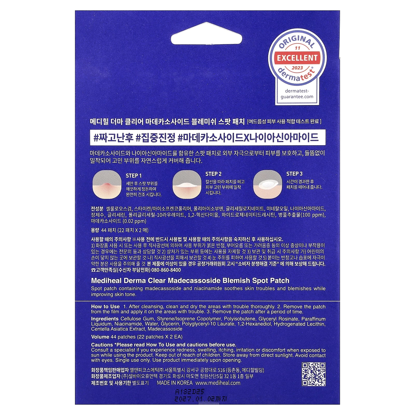 Патчи для точечного нанесения с мадекассосидом от Mediheal Derma Clear содержат мадекассосид и никотинамид, которые устраняют проблемы с кожей и несовершенства. Они плотно прилегают и покрывают проблемные участки кожи. Изготовлен из гидроколлоида, который не высыхает и хорошо абсорбирует кожу.