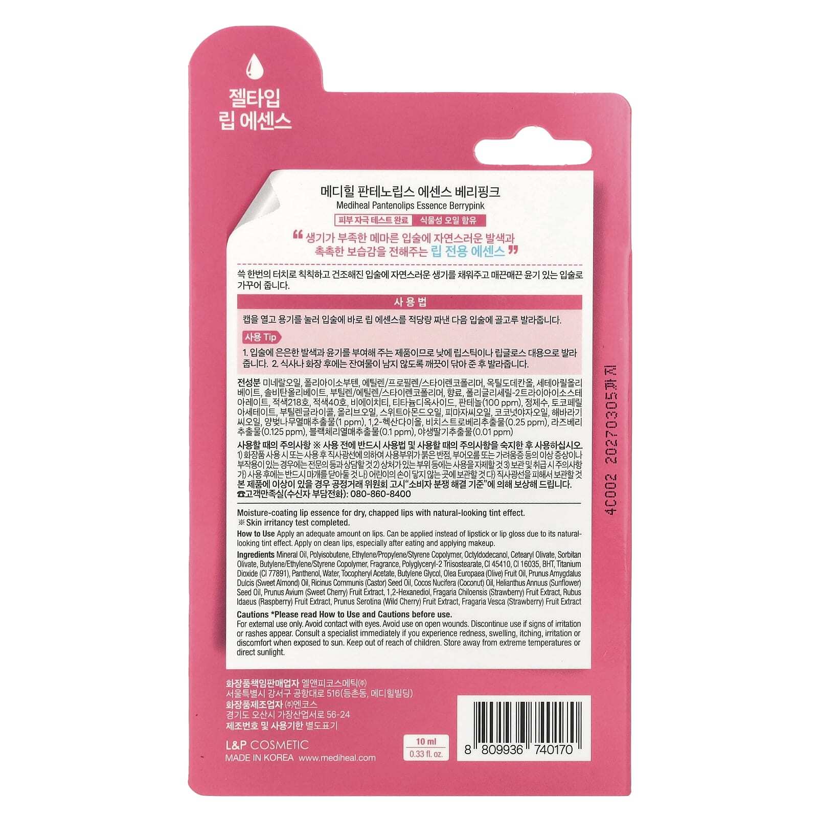Минеральное масло, полиизобутен, сополимер этилена/пропилена/стирола, октилдодеканол, цетеарил оливат, сорбитан оливат, сополимер бутилена/этилена/стирола, отдушка, полиглицерил-2 триизостеарат, CI 45410, CI 16035, бутилгидрокситолуол, диоксид титана (CI 77891), пантенол, вода, токоферилацетат, бутиленгликоль, оливковое масло (Olea europaea), масло сладкого миндаля (Prunus amygdalus dulcis), касторовое масло (Ricinus communis), кокосовое масло (Cocos nucifera), подсолнечное масло (Helianthus annuus), экстракт плодов черешни (Prunus avium), 1,2-гександиол, экстракт ягод клубники (Fragaria chiloensis), экстракт ягод малины (Rubus idaeus), экстракт плодов дикой вишни (Prunus serotina), экстракт плодов клубники (Fragaria vesca).