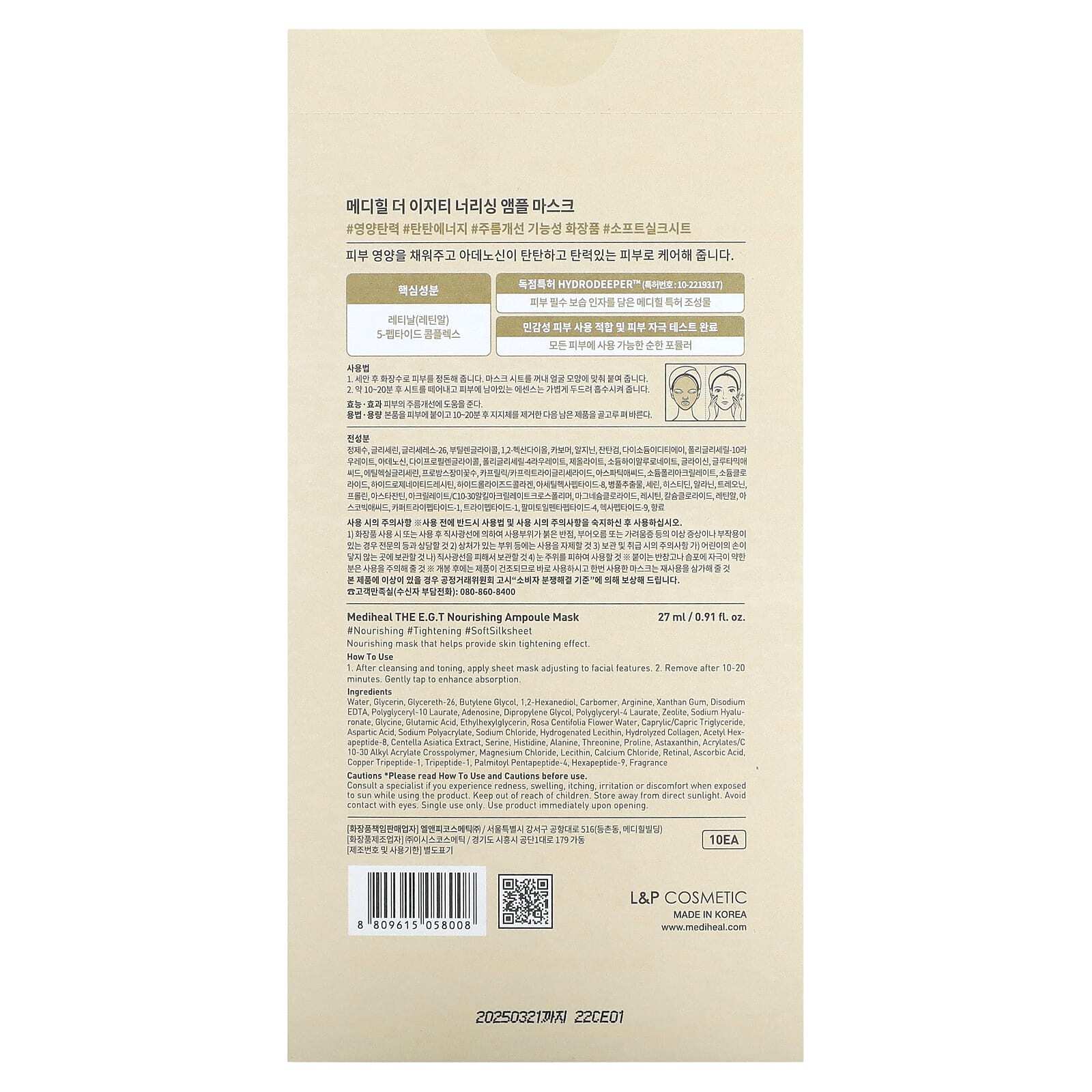 MEDIHEAL, The EGT, питательная маска-ампула, 10 шт., По 27 мл (0,91 жидк. унц.)