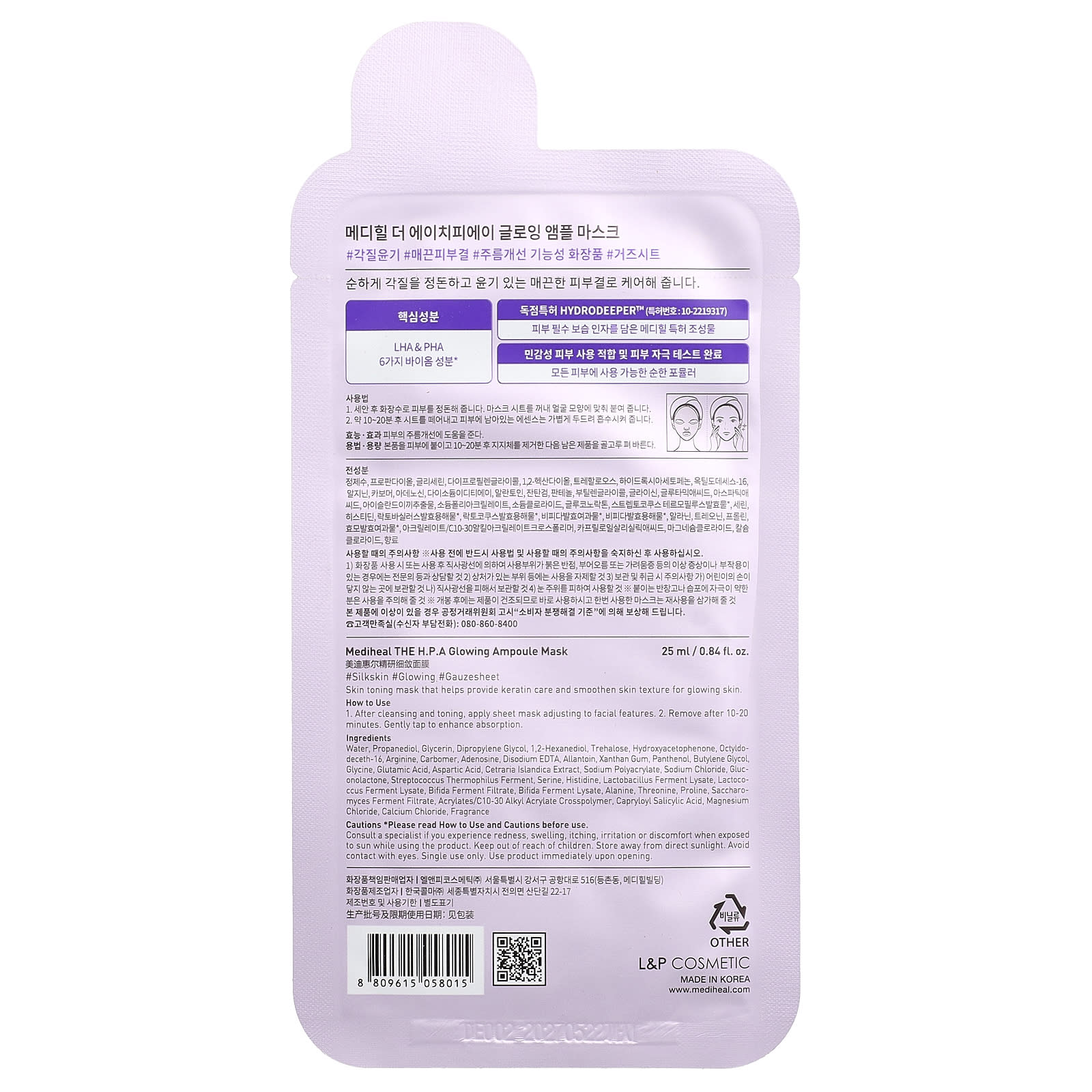 Проконсультируйтесь со специалистом, если во время использования продукта вы испытываете покраснение, отек, зуд, раздражение или дискомфорт. Хранить в недоступном для детей месте. Беречь от воздействия прямых солнечных лучей Избегайте попадания в глаза. Маска для одноразового использования. Использовать сразу после вскрытия.