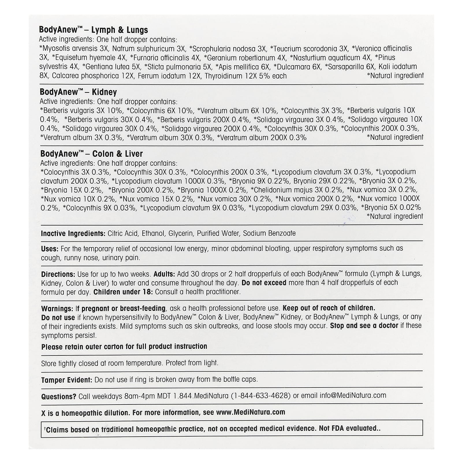 Перед применением во время беременности или кормления грудью следует проконсультироваться с медицинским работником. Хранить в недоступном для детей месте. Не используйте, если гиперчувствительность к толстой кишке и печени BodyAnew ™, почкам BodyAnew ™, лимфе и легким BodyAnew или любому из их ингредиентов. Возможны легкие симптомы, такие как кожные высыпания и жидкий стул. Остановитесь и обратитесь к врачу, если эти симптомы не исчезнут.