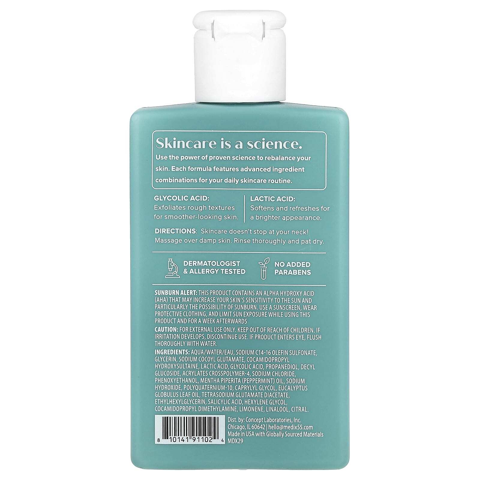 Вода (Aqua/eau), натрия С14-16 олефин сульфонат, глицерин, кокоил глутамат натрия, кокамидопропил гидроксисултаин, молочная кислота, гликолевая кислота, пропандиол, децил глюкозид, акрилаты кроссполимер-4, хлорид натрия, феноксиэтанол, масло перечной мяты (Mentha piperita), гидроксид натрия, поликватерниум-10, каприлилгликоль, масло из листьев эвкалипта шаровидного (Eucalyptus globulus), диацетат глутамата тетранатрия, этилгексилглицерин, салициловая кислота, гексиленгликоль, кокамидопропил диметиламин, лимонена, линалоол, цитраль.