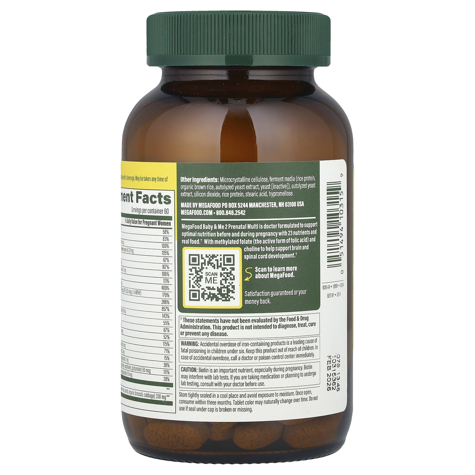 Мультивитаминный комплекс для беременных Baby & Me 2 от MegaFood разработан врачом и обеспечивает оптимальное количество питательных веществ до и во время беременности благодаря содержанию 23 питательных веществ и натуральных продуктов. Метилированный фолат (активная форма фолиевой кислоты) и холин помогают поддерживать развитие головного и спинного мозга.