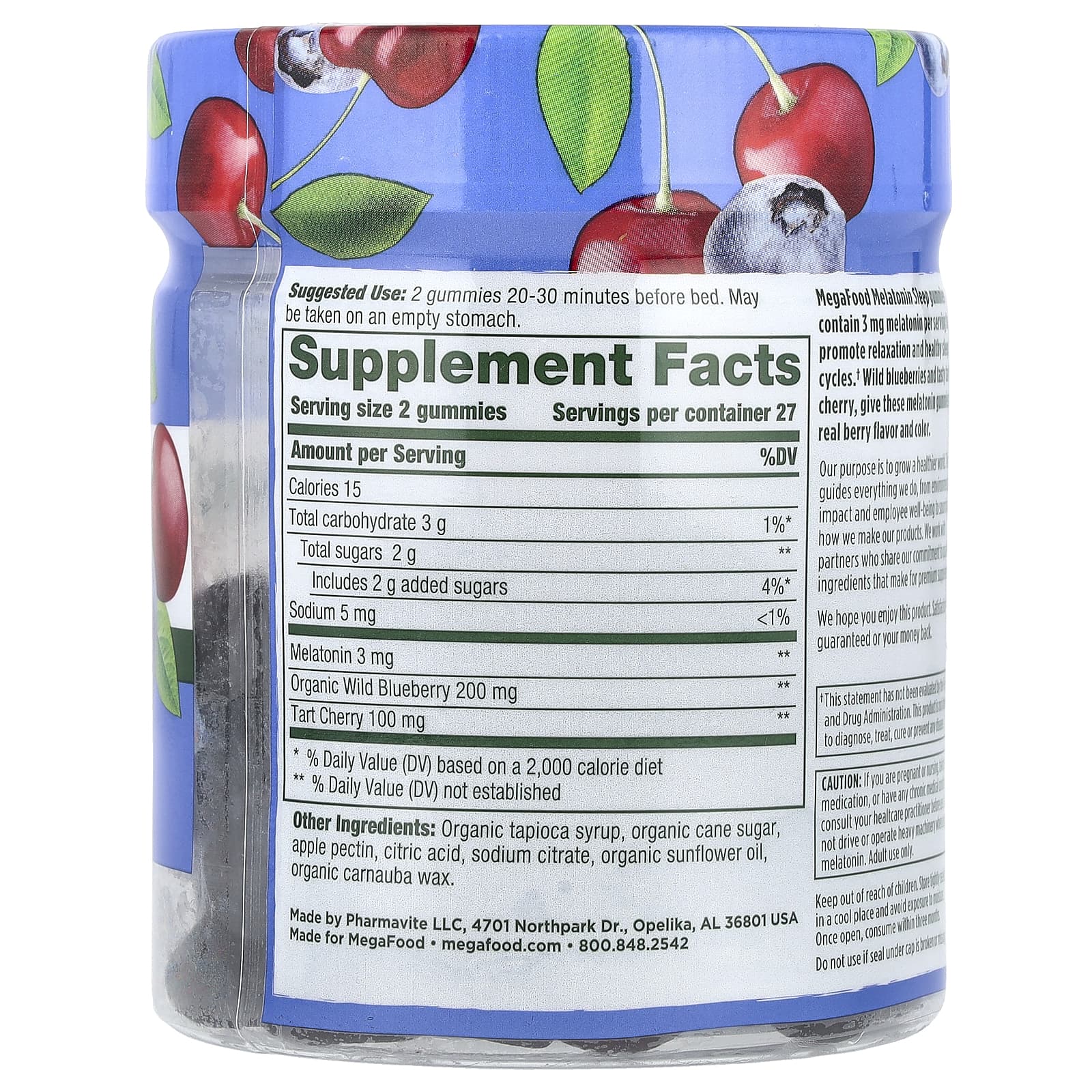 Мелатониновые жевательные таблетки для сна MegaFood содержат 3 мг мелатонина на порцию, что способствует расслаблению и здоровому циклу сна. Дикая черника и вкусная терпкая вишня придают этим жевательным мармеладкам с мелатонином настоящий ягодный вкус и цвет.