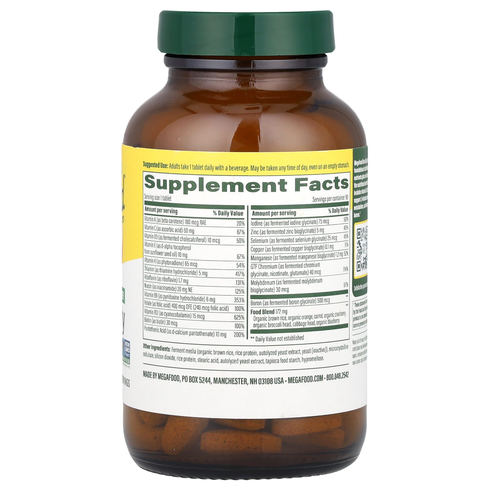 MegaFood One Daily Iron Free - это фундаментальный мультивитаминный комплекс, содержащий 21 питательное вещество и натуральные продукты. Разработано для удовлетворения потребностей взрослых в питании. Этот мультивитамин содержит витамин C и цинк для поддержки иммунитета, витамины группы B для поддержки энергетического обмена и витамин D для поддержания здоровья костей.