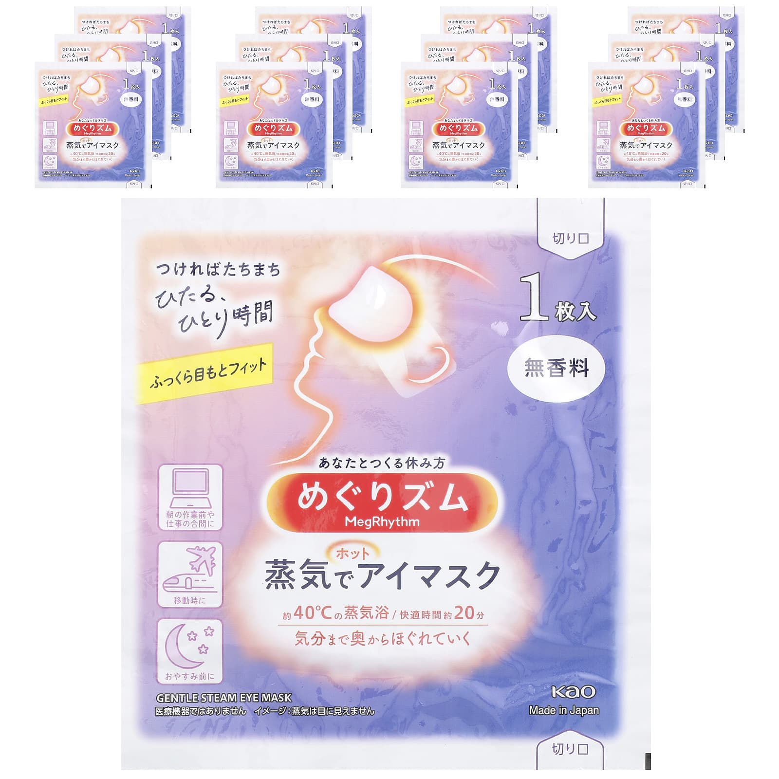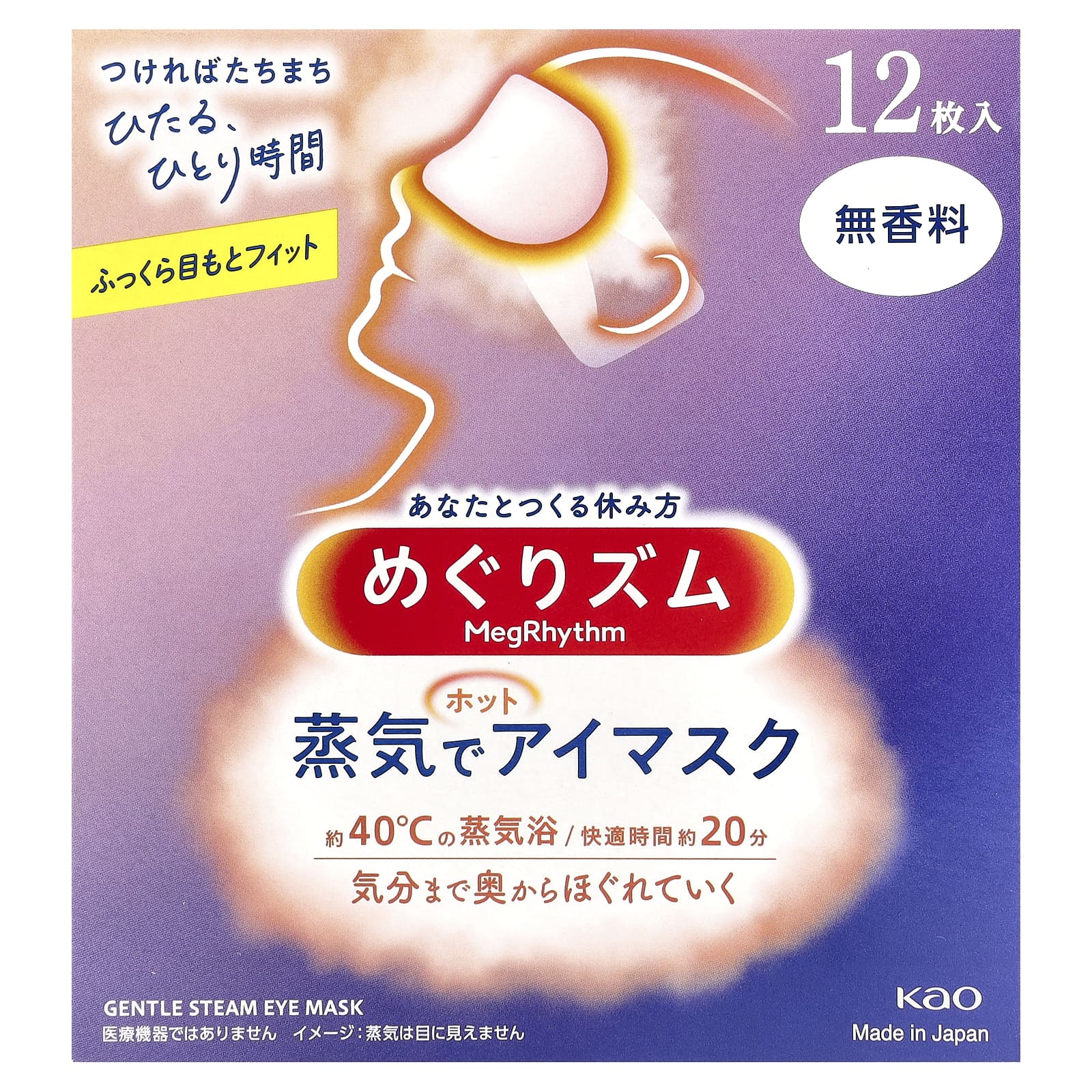 Megrhythm, Kao, маска для глаз с нежным паром, без отдушек, 12 шт.