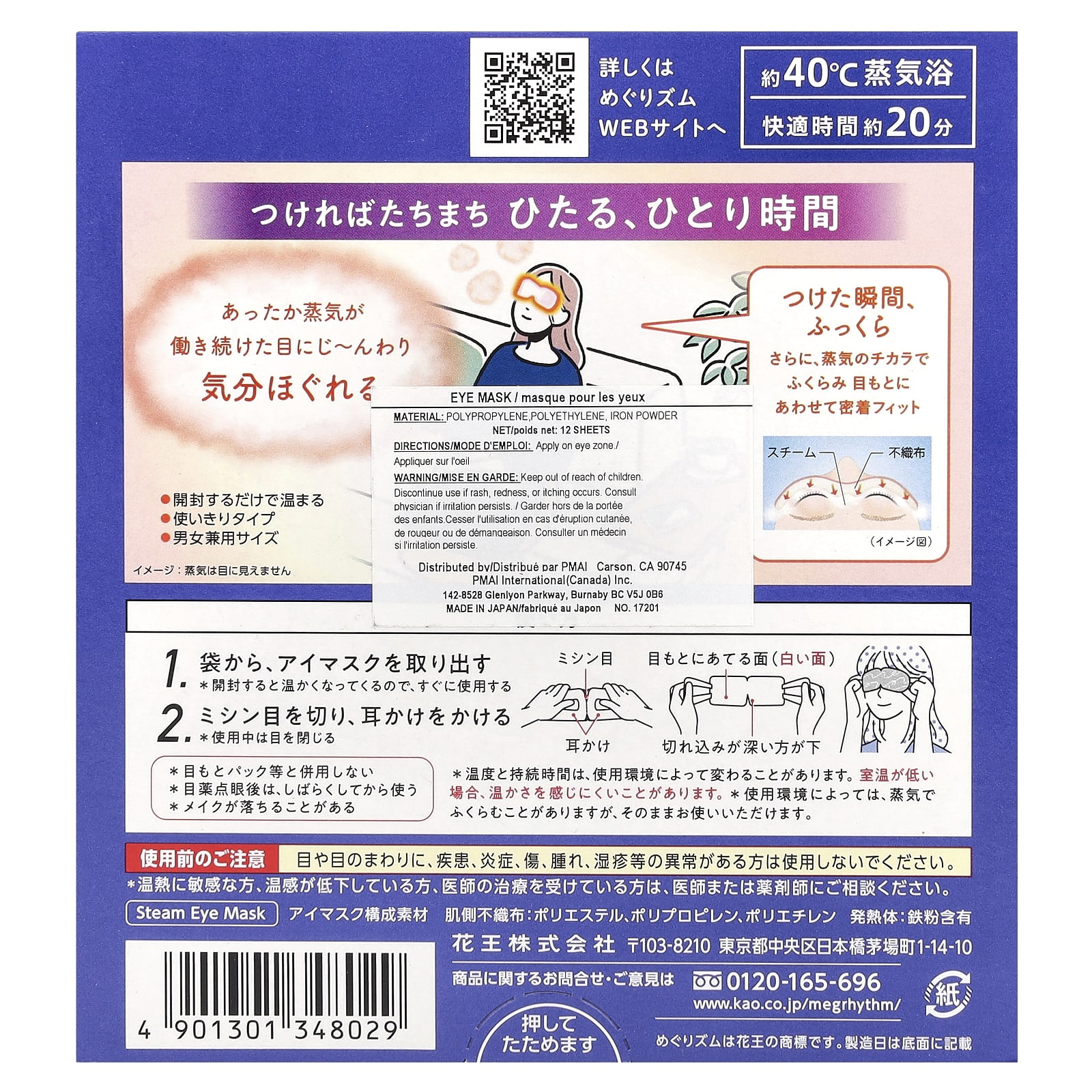 Паровая маска для глаз MegRhythm сохраняет комфортную температуру в течение 10 минут, омывая глаза и нежную область вокруг глаз теплым паром. Эта «паровая баня для глаз» глубоко снимает дневное напряжение и успокаивает.