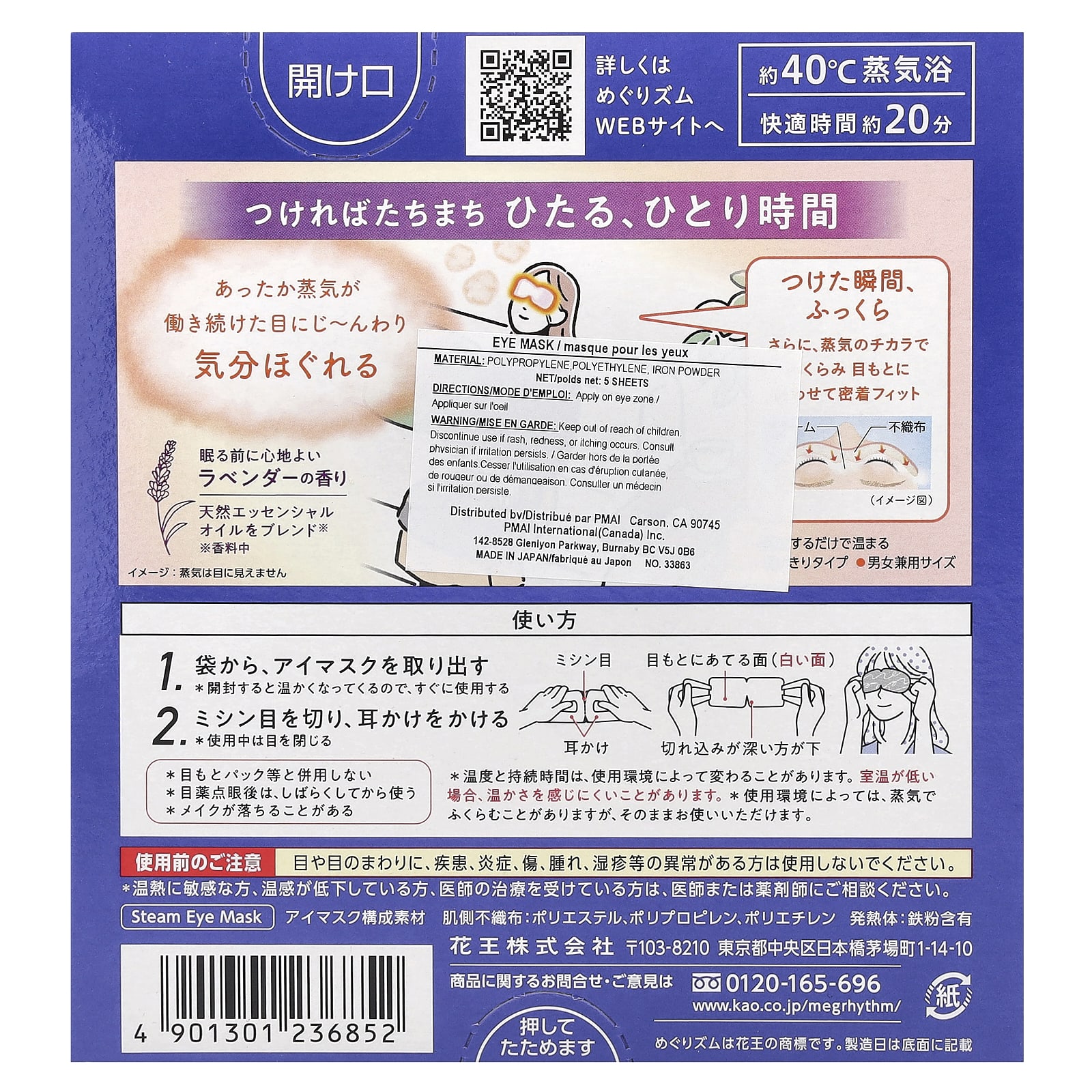 Паровая маска для глаз MegRhythm сохраняет комфортную температуру в течение 10 минут, омывая глаза и нежную область вокруг глаз теплым паром. Эта «паровая баня для глаз» глубоко снимает дневное напряжение и успокаивает.